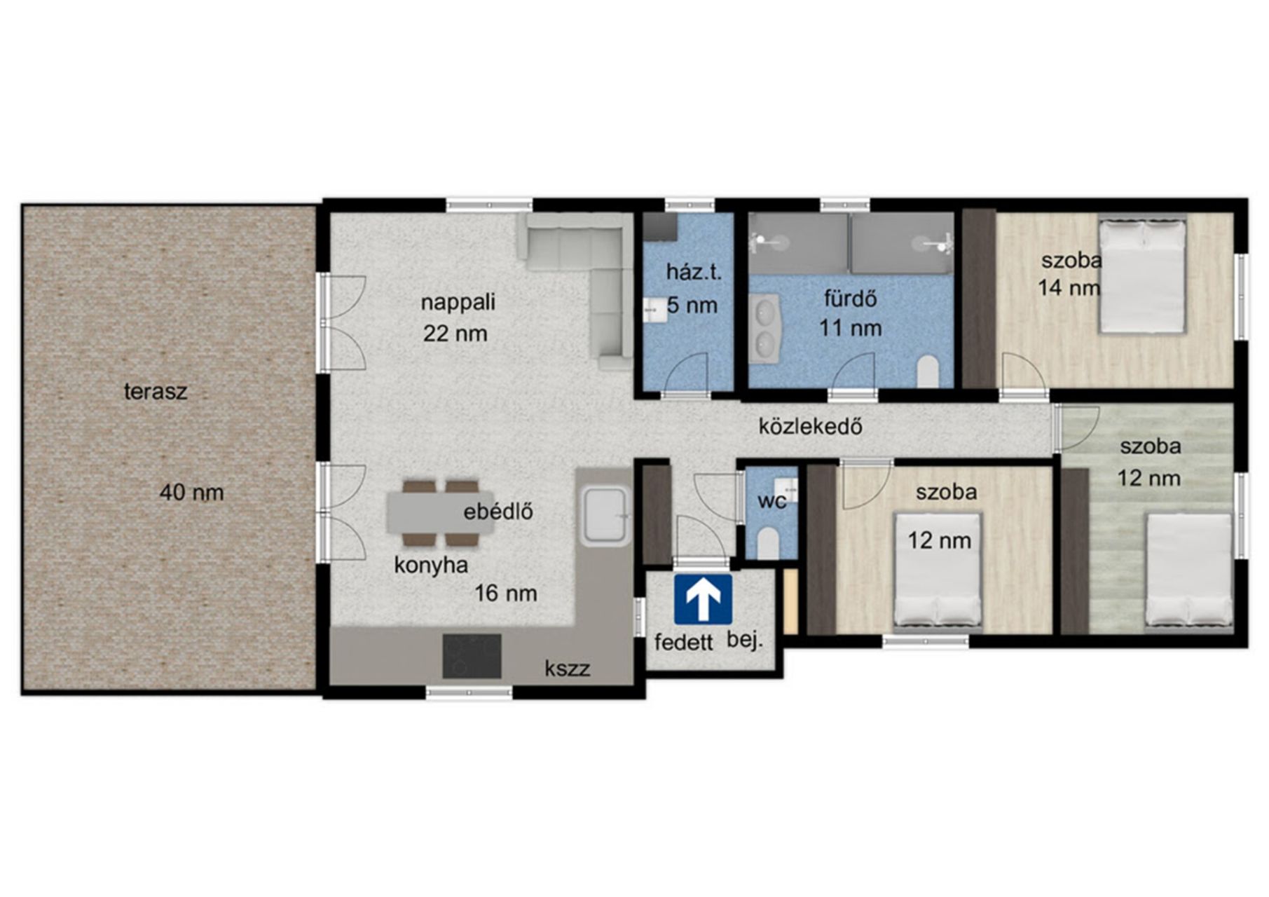 - 106 nm-es hasznos alapterület.