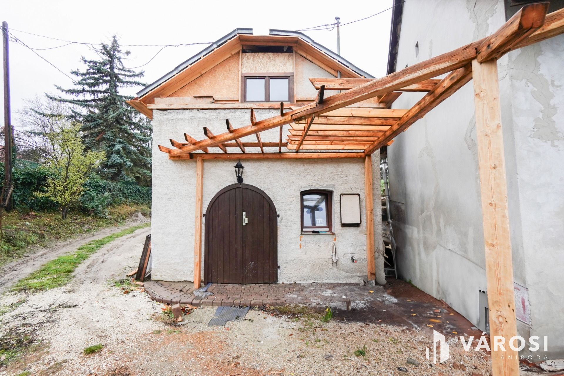 -bejárat felett pergola elhelyezve