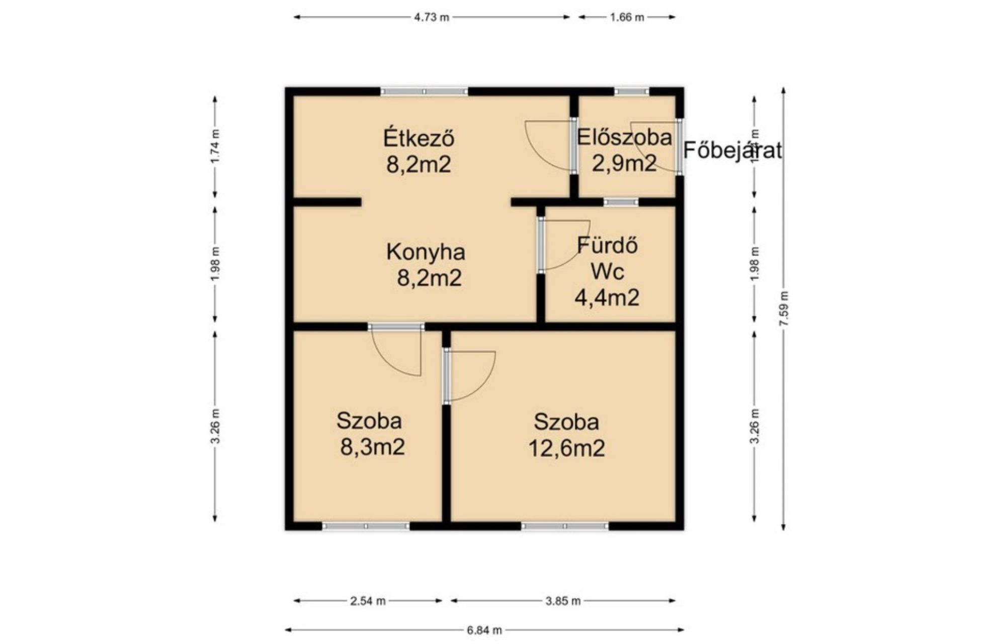 A ház melegét fa tüzelésű kályhák biztosítják. Tájolás: Kelet-Nyugat-Dél