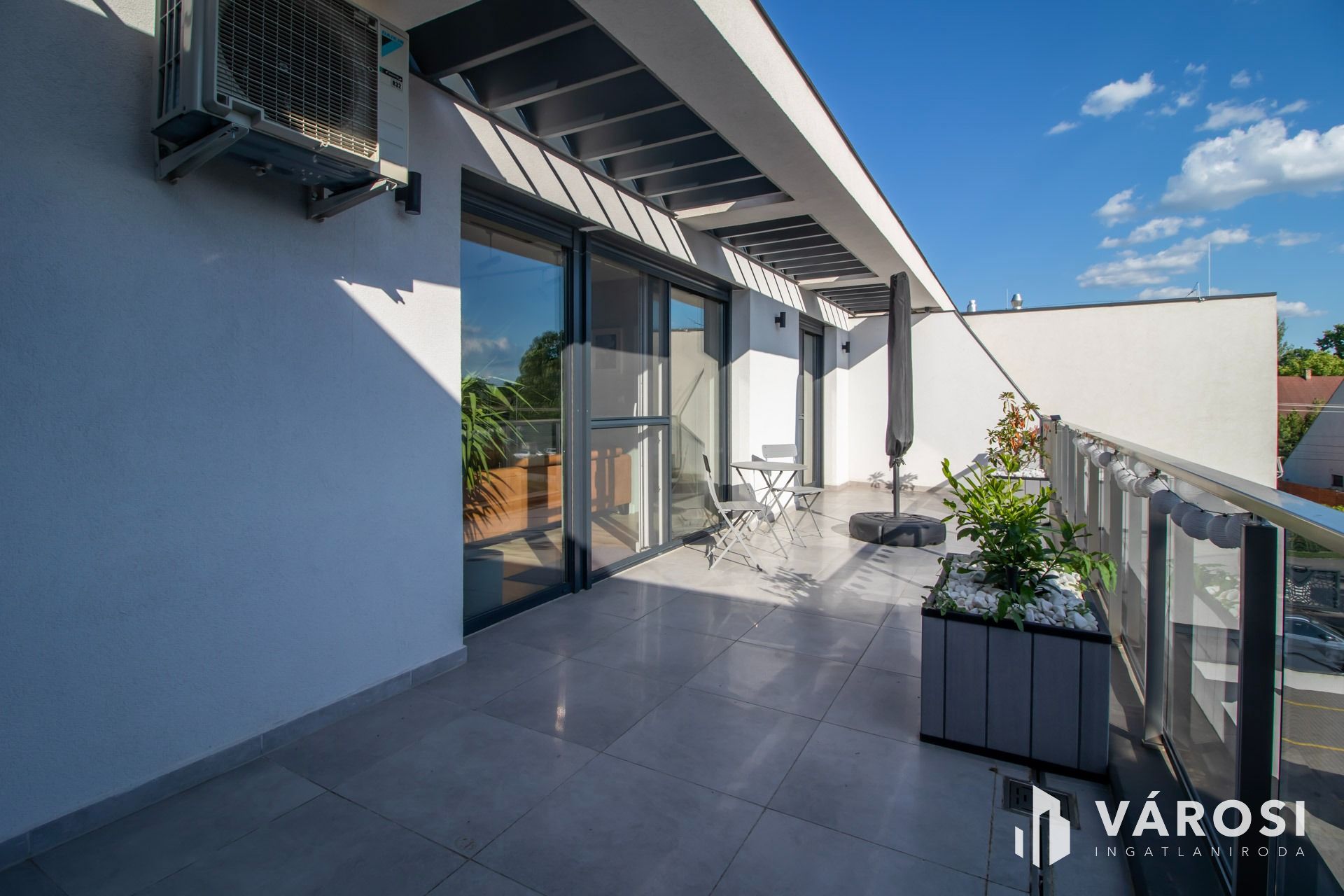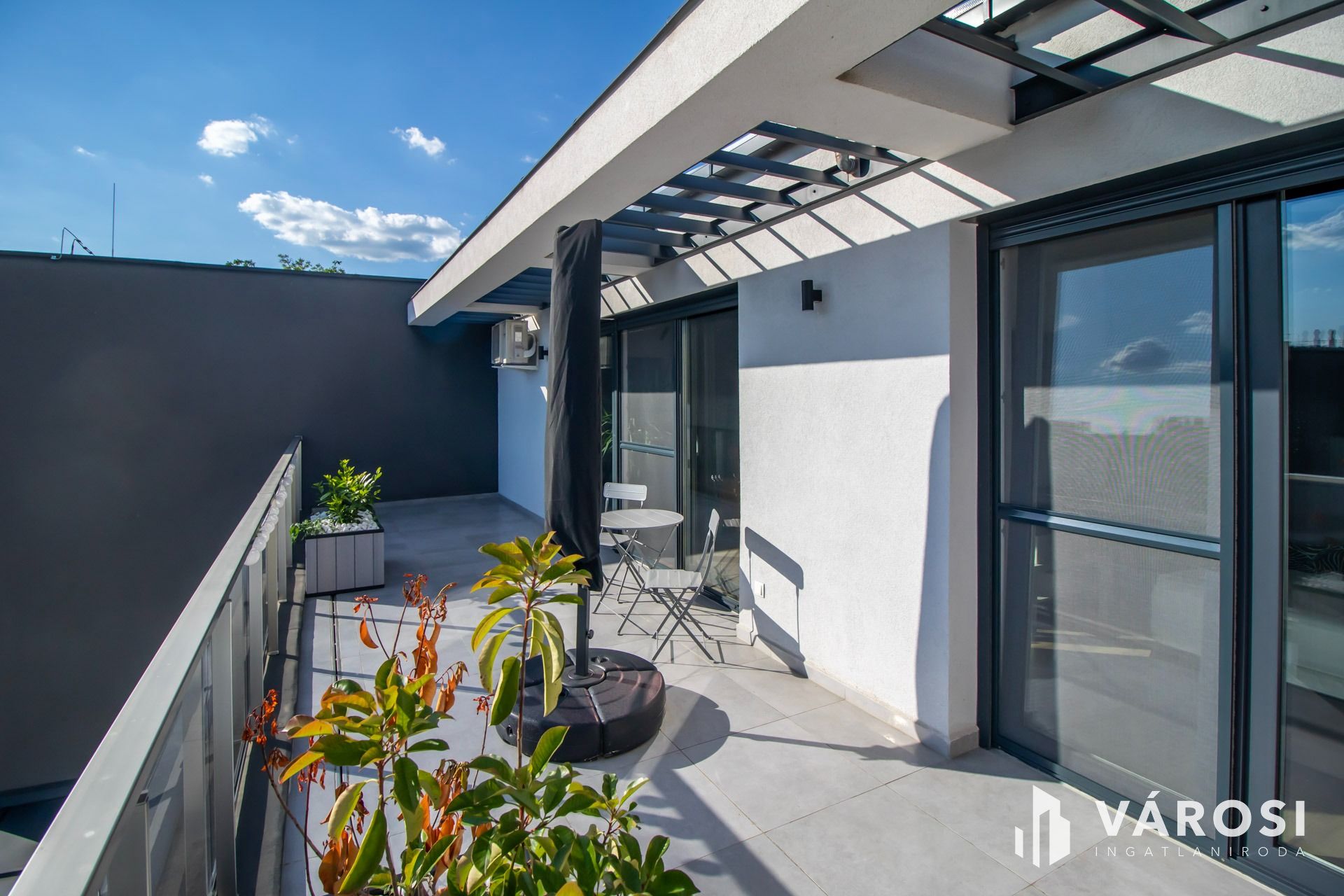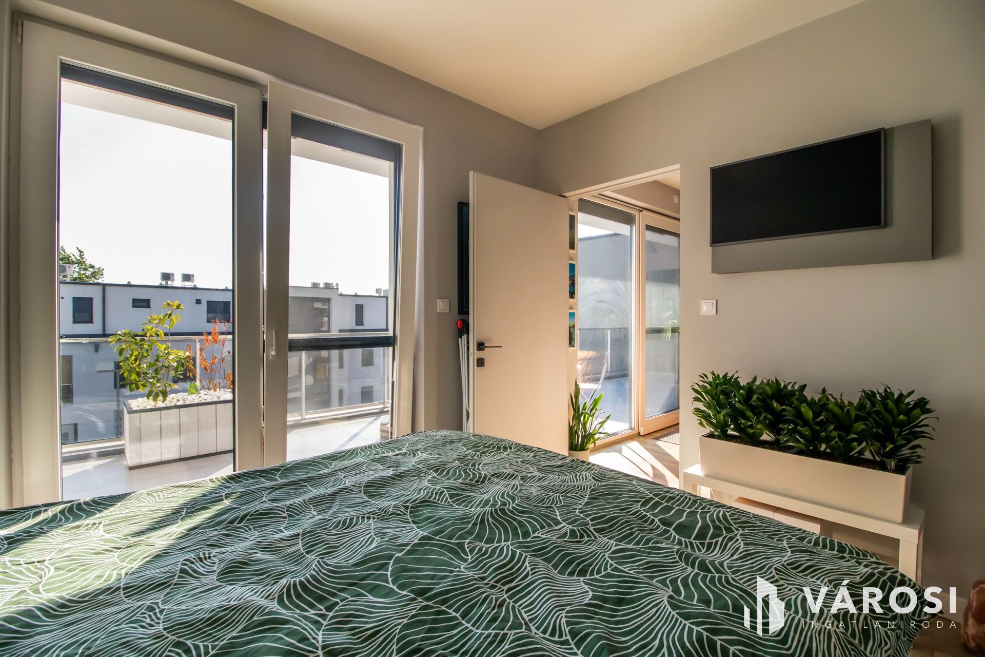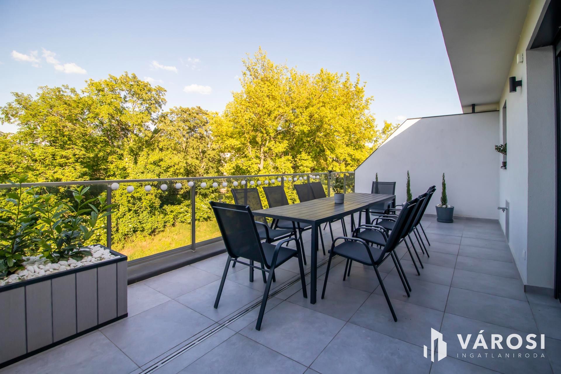 This residential park was built a few years ago in a green area close to the center of Velence, and on its top floor, a luxury penthouse apartment constructed with premium materials is for sale. This living room + 1 bedroom apartment is surrounded by huge terraces on both sides, and is looking for an exacting new owner who desires a unique property in a quiet location. It is being sold fully furnished and equipped as shown, so you only need to bring your personal belongings. The apartment can be moved into immediately!