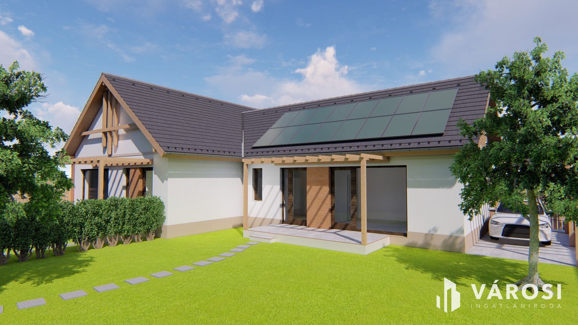 - A gépkocsi beállókhoz, illetve a teraszokhoz csatlakozva a két kocsibeállónál