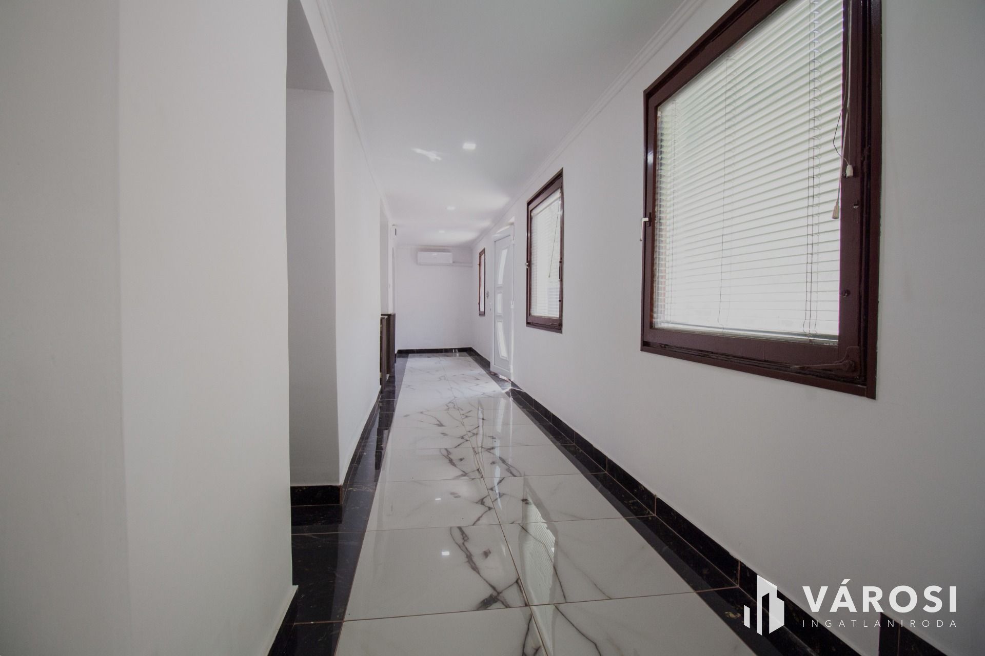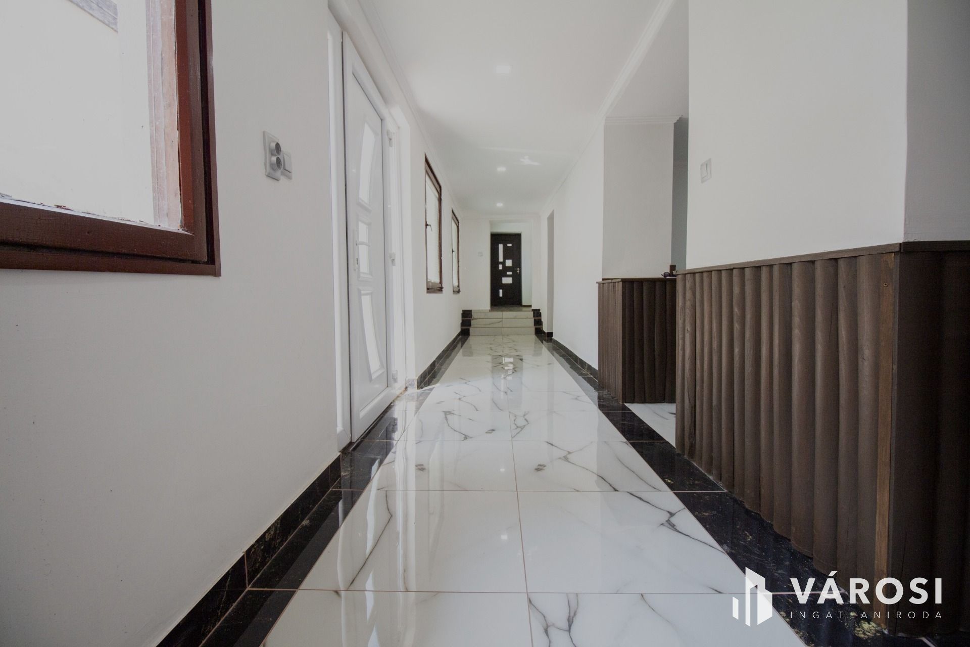 A házban három hálószoba, tágas nappali, konyha-étkező, fürdőszoba és külön WC található, így tökéletes elosztású akár nagyobb család számára is. A felújítás során a szobákban elegáns, fényes tükörparketta, a közlekedőben, konyhában, fürdőben és mellékhelyiségben egységes, modern padlólapok kerültek beépítésre. A konyha és a fürdőszoba teljesen új, modern kivitelben készült.