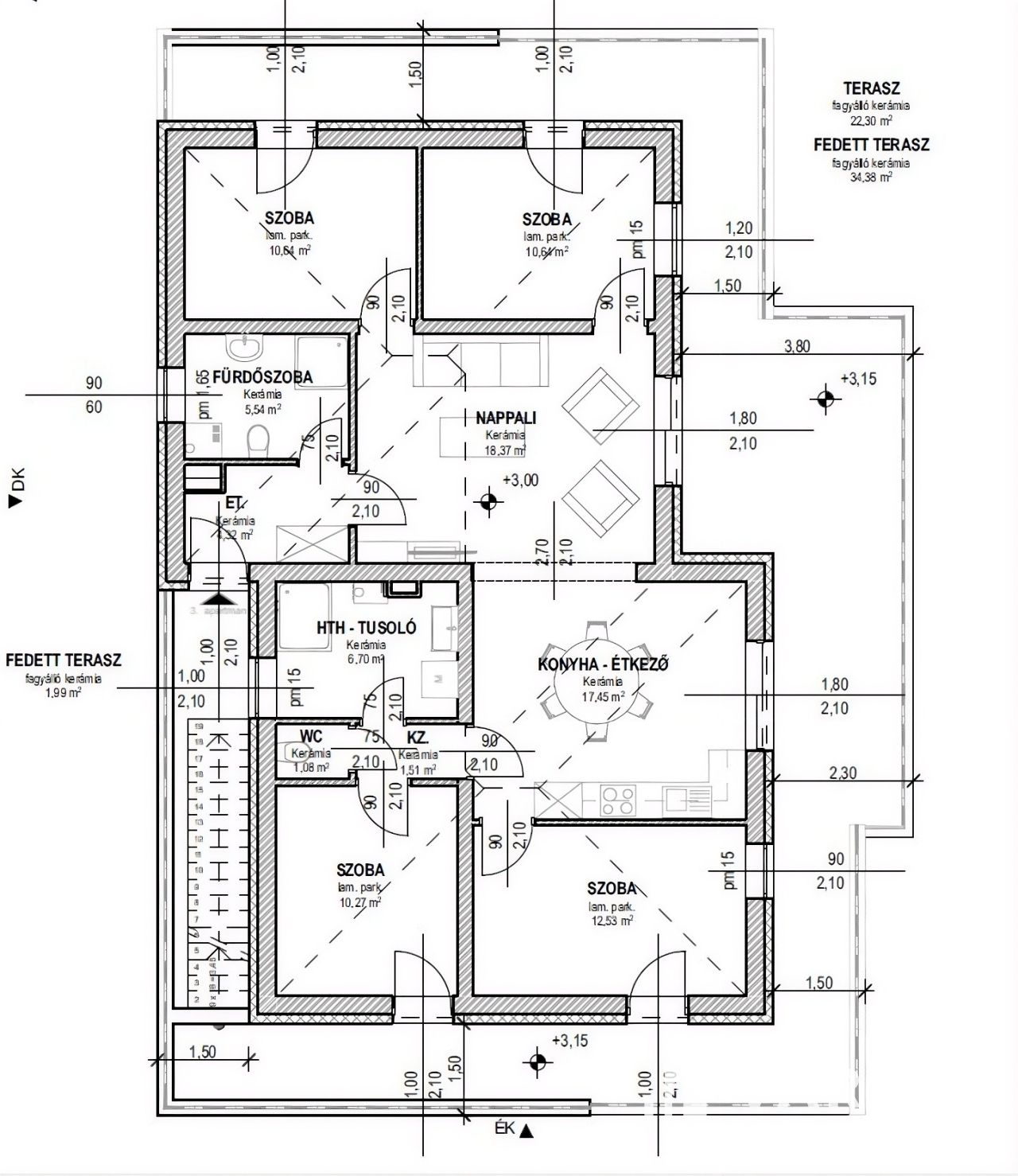 - Tágas és világos terek: 4 szoba + amerikai konyhás nappali, 2 modern fürdőszoba.