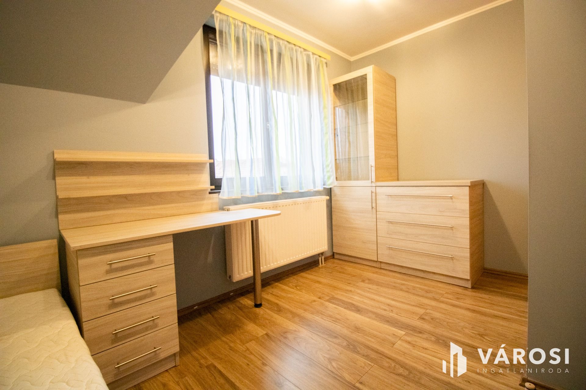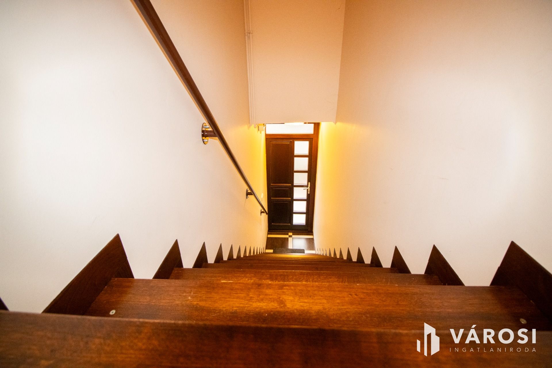 A lakás az első emeleten, a tetőtérben helyezkedik el, ahová kizárólag ehhez az ingatlanhoz tartozó, saját lépcsőházon keresztül juthatunk fel. A belső terek fiatalosak és rendkívül praktikus elrendezésűek: a közlekedőből nyílik a világos nappali és a modern konyha–étkező, amelyhez egy elegáns, kovácsoltvas korlátos erkély kapcsolódik. A két hálószoba jól szeparált, a külön WC és a mindkét irányból megközelíthető fürdőszoba pedig gondosan átgondolt, kényelmes megoldást nyújt a mindennapokban.