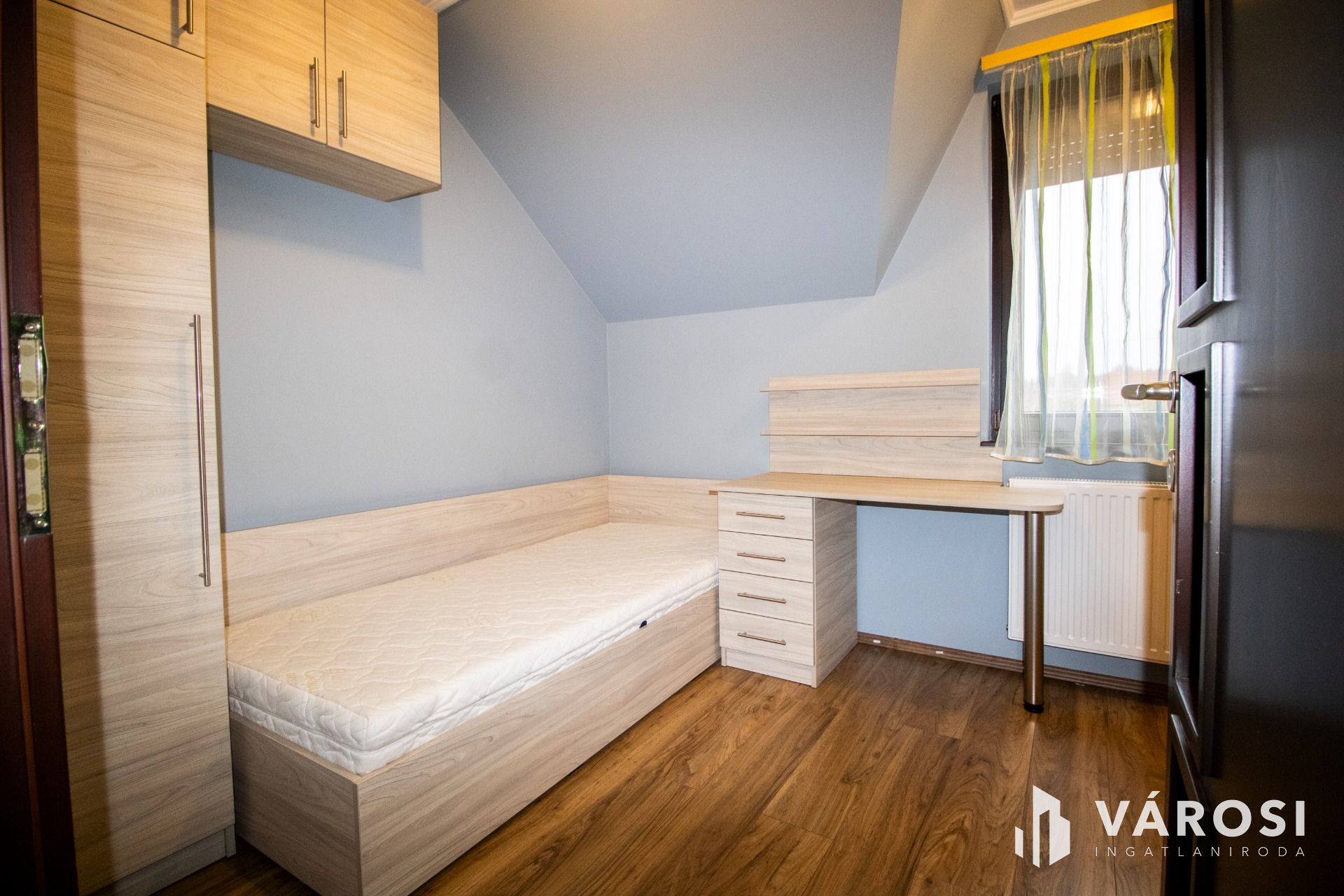 Gyula–Újváros egyik legvonzóbb utcájában eladó egy 69 m²-es, tégla építésű, tetőtéri sorházi lakás, amely egy impozáns, 1534 m²-es telken található, zárt és rendezett környezetben. A biztonságot és kényelmet elektromos kapubejáró és saját autóbeálló biztosítja, a lakás pedig teljesen külön mérésű közművekkel rendelkezik, így valódi önálló egységet kínál.