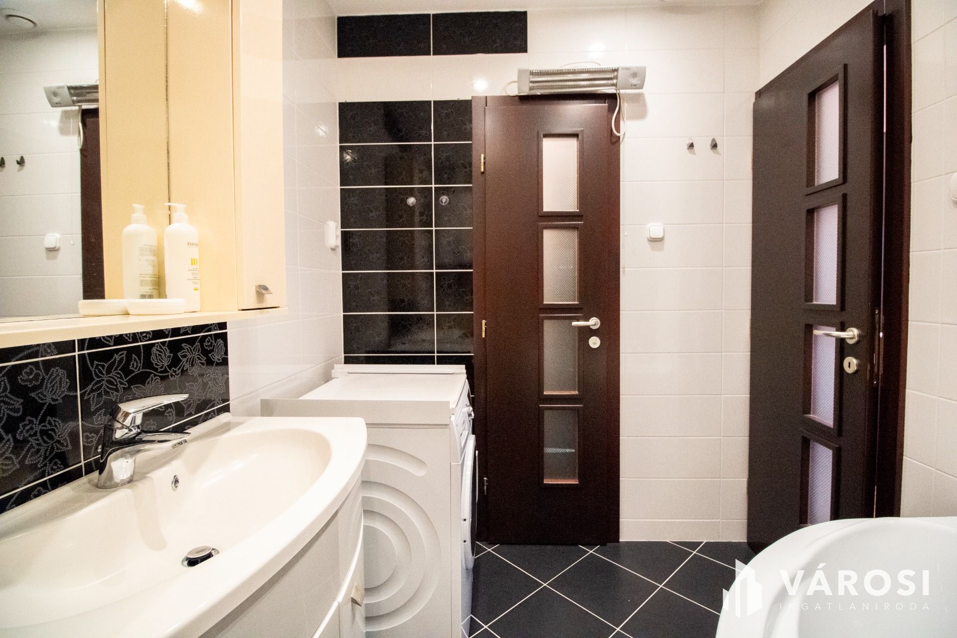 Az ingatlan teljes, egyedileg gyártatott bútorozattal együtt eladó, a konyha pedig vadonatúj, modern bútorral és minőségi konyhagépekkel felszerelt. A műanyag, dupla üvegezésű, redőnyös nyílászárók, a több ponton záródó biztonsági bejárati ajtók, a modern beltéri ajtók, valamint a prémium burkolatok és minőségi szaniterek mind a gondos tervezést és a fiatalos, esztétikus megjelenést erősítik. A fűtést kombi gázkazán biztosítja, amit egy 3,5 kW-os hűtő–fűtő klíma egészít ki, továbbá a lakás háromfázisú árammal is rendelkezik. Az ingatlan fenntartása rendkívül kedvező, mivel két oldalról és alulról is fűtött és szigetelt.