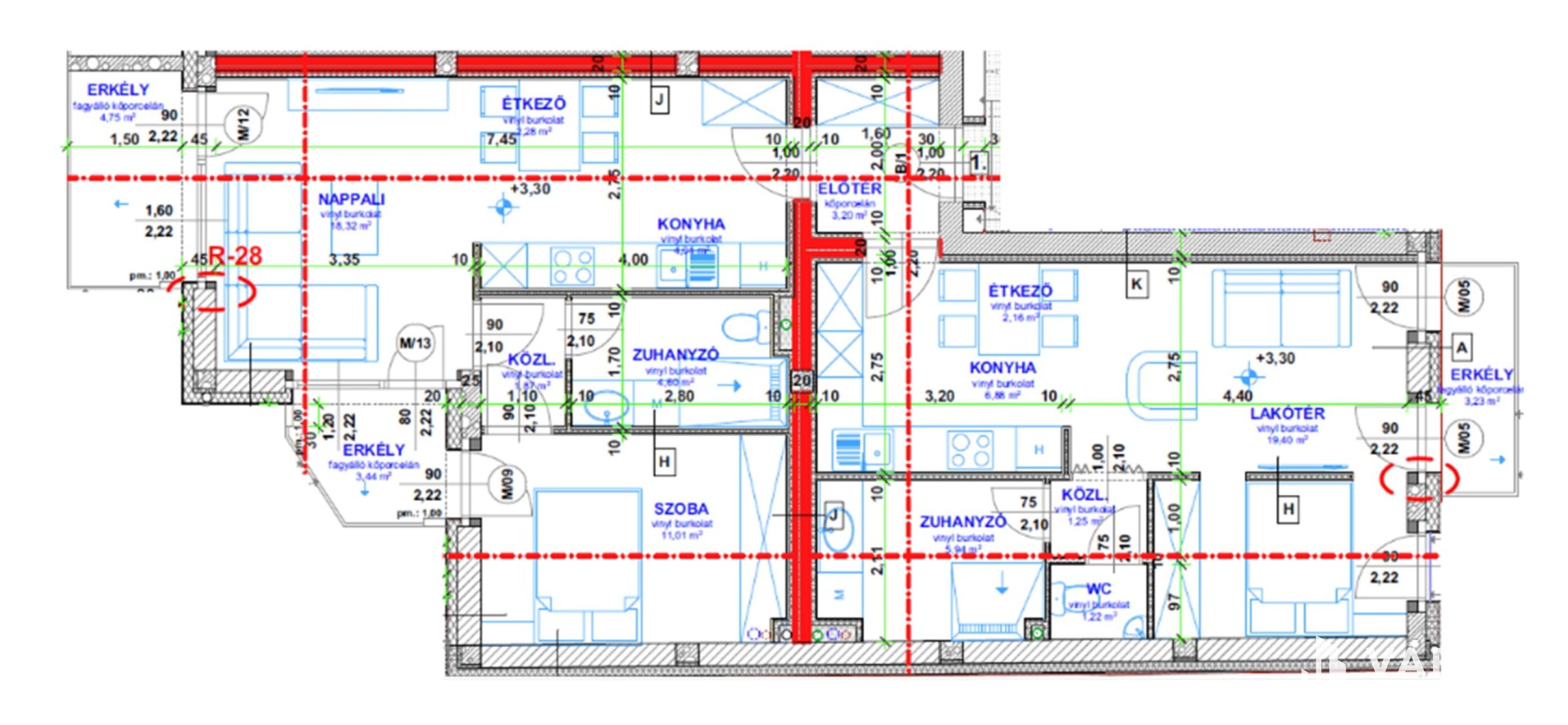1. Lakás 82,17 m2 + 11,42 m2 (erkély)