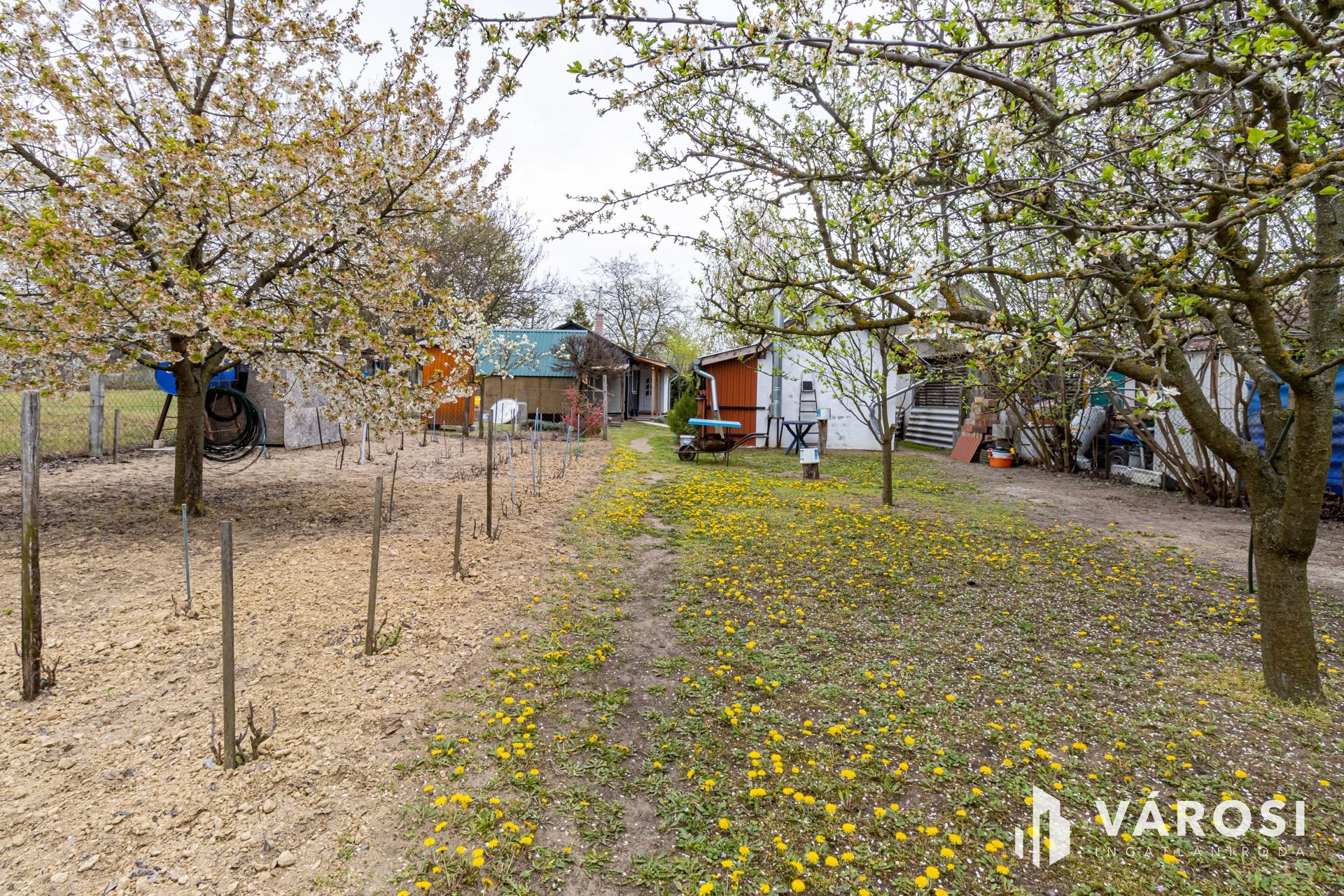 Szentmártonkáta, Tajti dűlőn, művelés alól kivont 2583 m2 zártkert, téliesített, szigetelt faházzal, tégla építésű, teljesen alápincézett, teraszos nyári konyhával, fém szerszámtárolóval eladó.