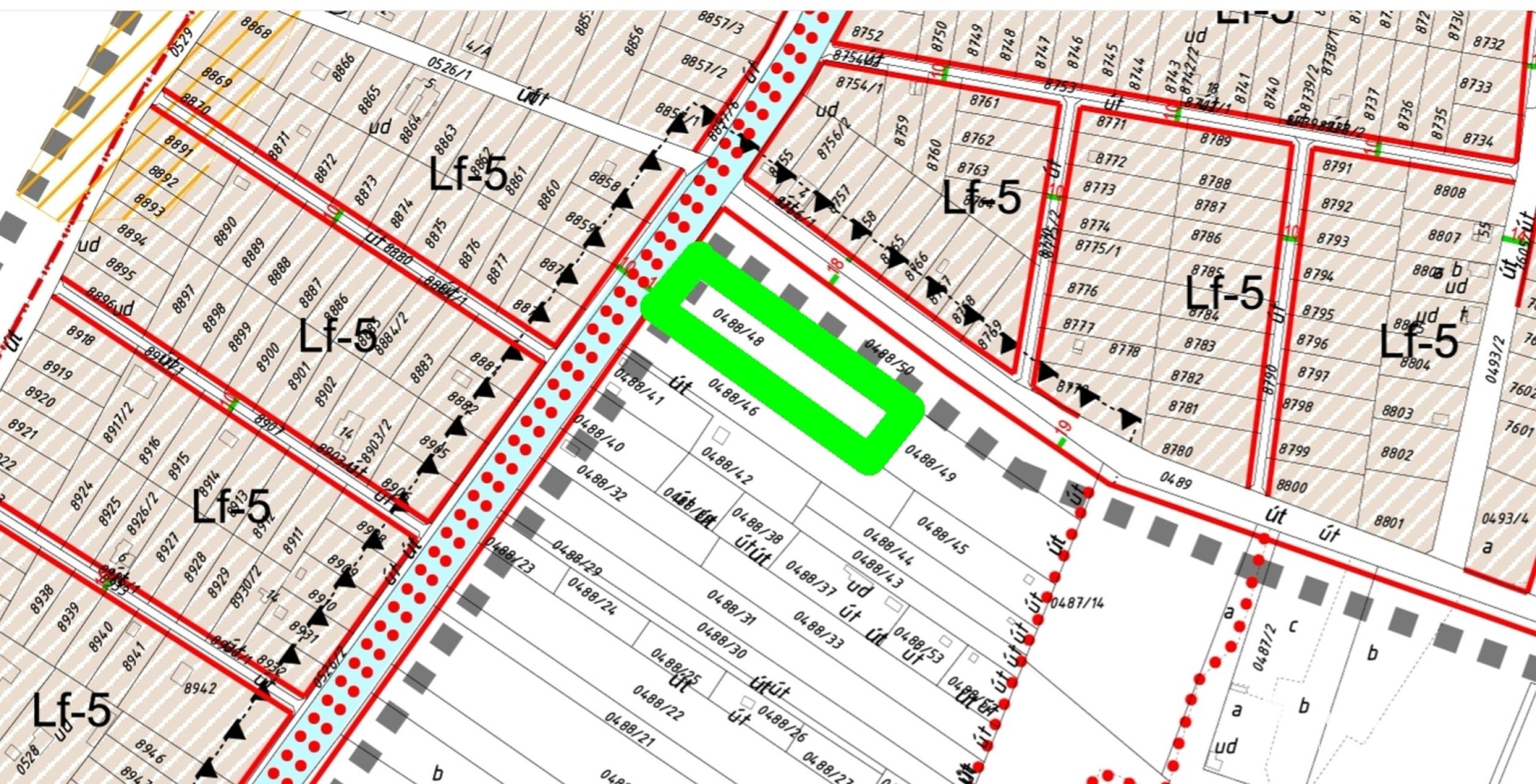 • LF-5 falusias lakóövezet határán lévő telek