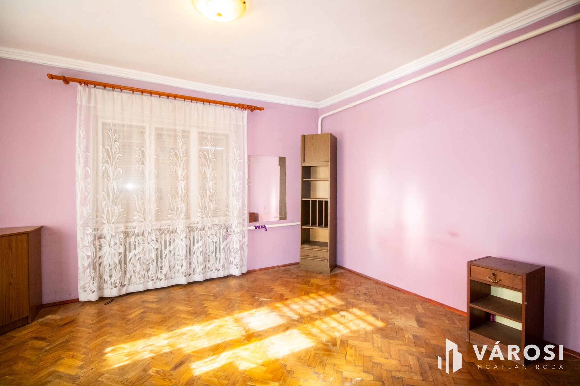 A ház dupla bejáratos: az utcafront felől előszoba és közlekedő fogad, hátulról egy külön kis előtérbe érkezünk, ahonnan szemben a konyha, jobbra az étkező, balra pedig a nappali található. A nappali mellett három különálló, nagy méretű hálószoba helyezkedik el, ezen kívül fürdőszoba és kamra tartozik még a lakótérhez. A helyiségek arányosak, jól bútorozhatók, egy nagycsalád számára is kényelmesen használhatók.