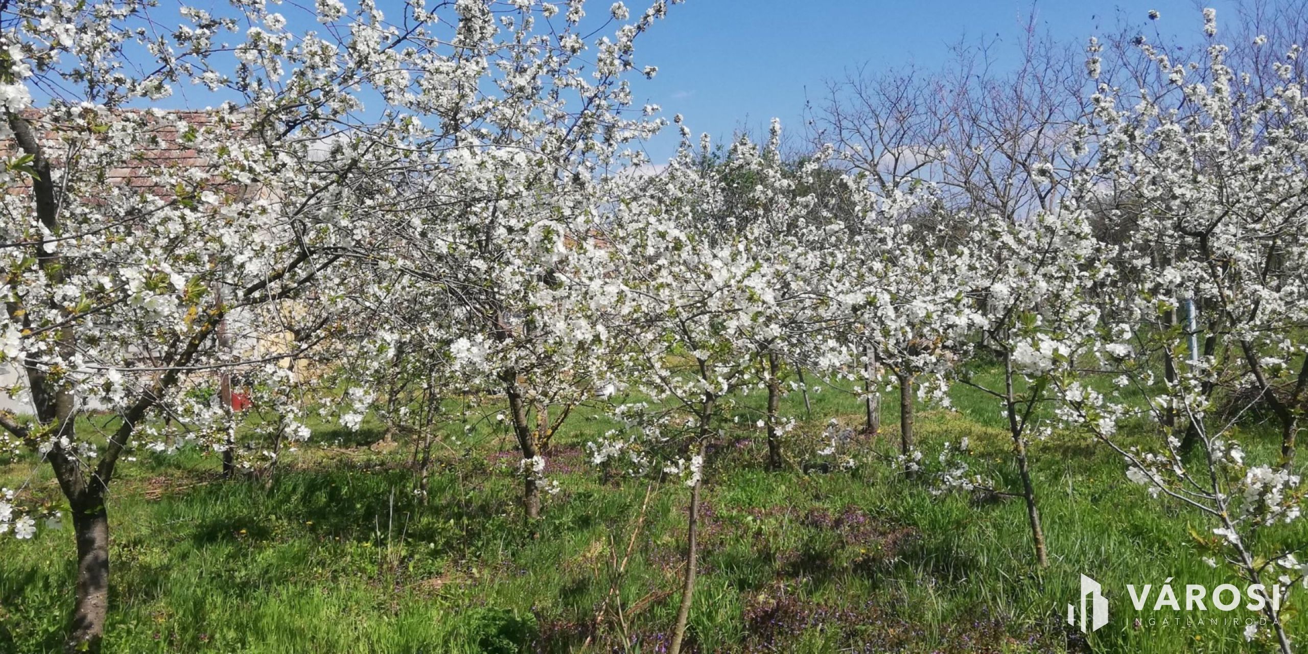 Az 1259 m²-es telek részben füves, részben gyümölcsfákkal beültetett. Az öntözés saját kútról megoldott.