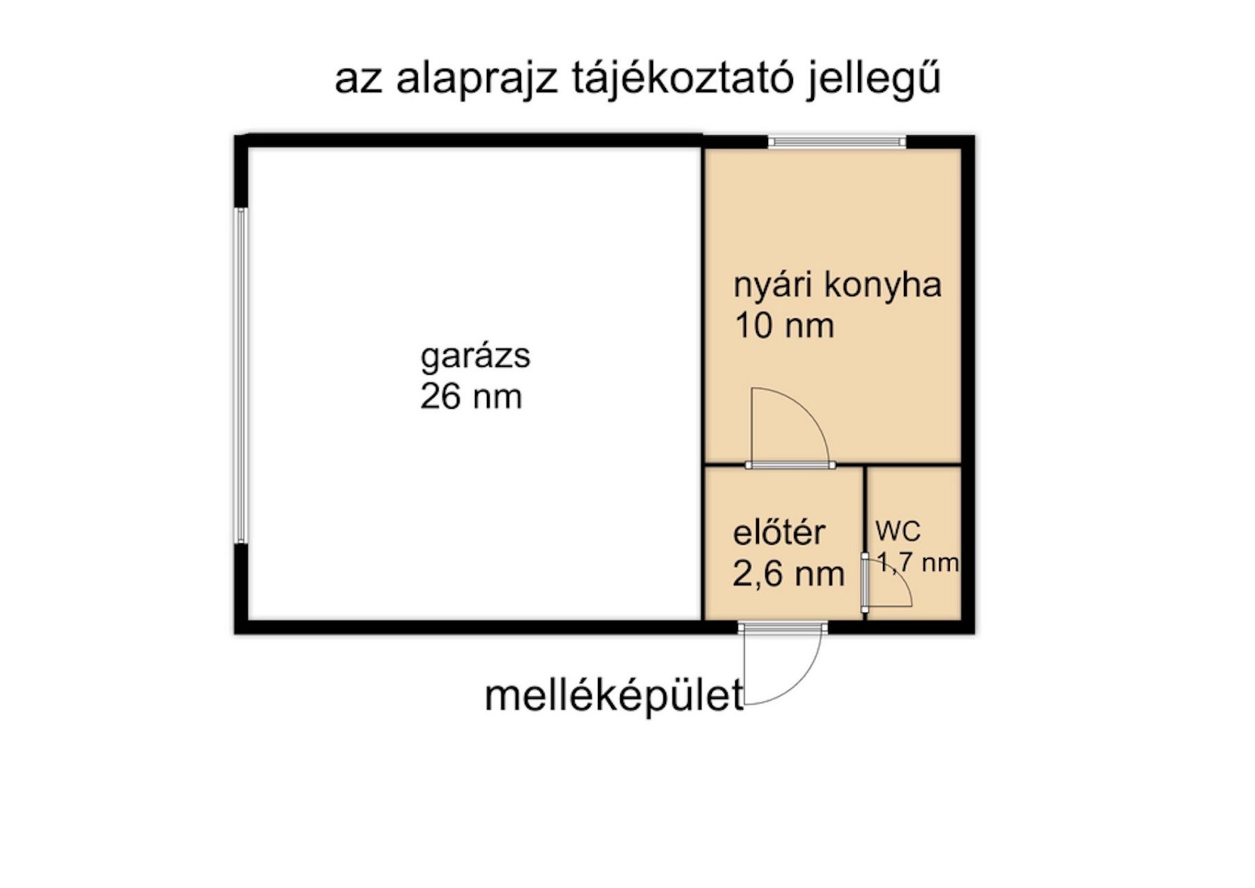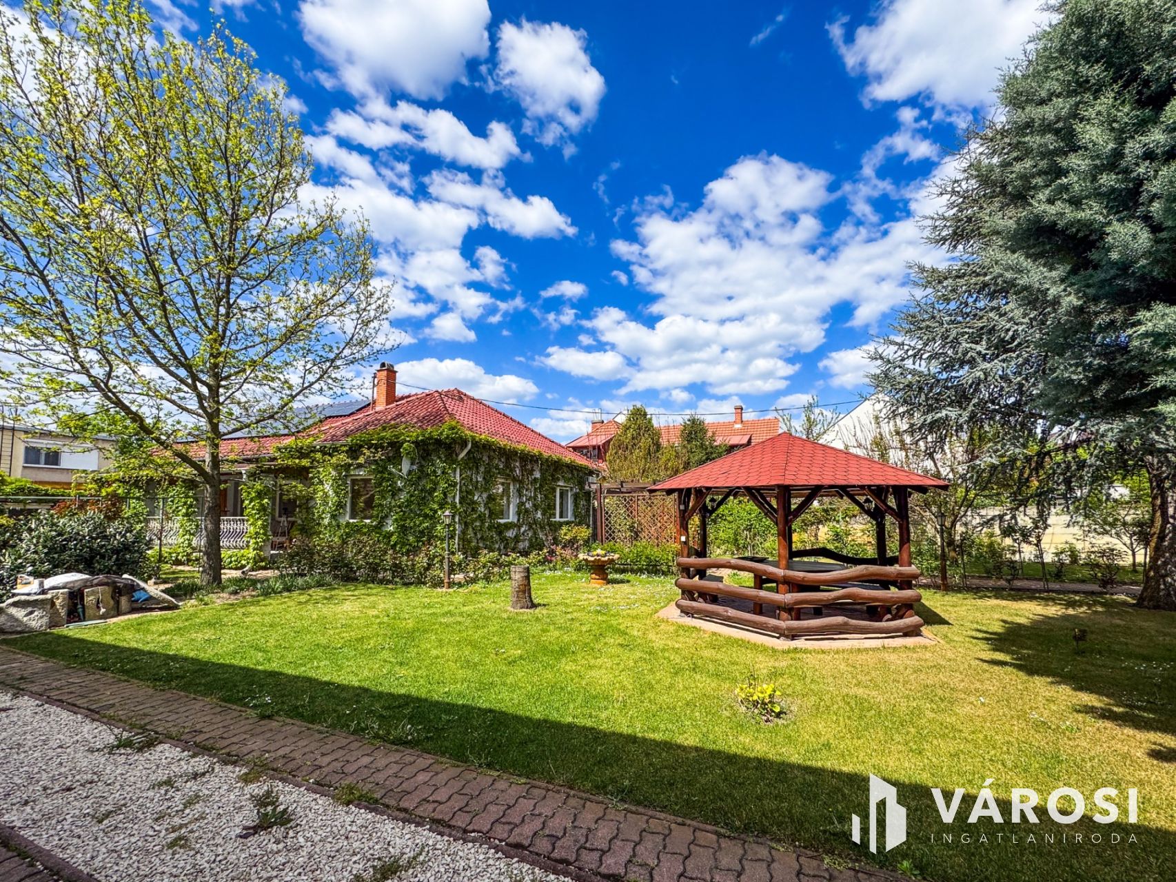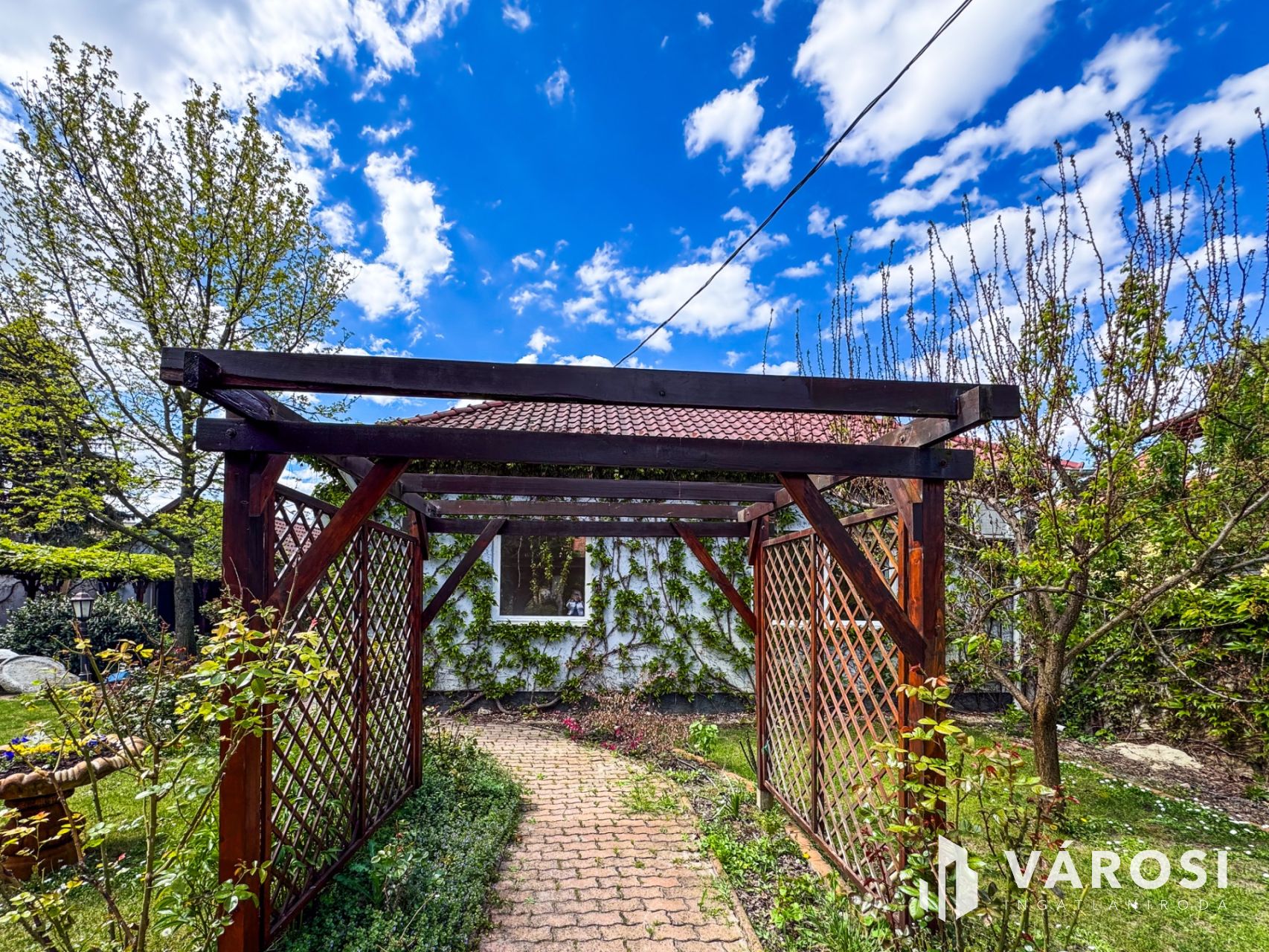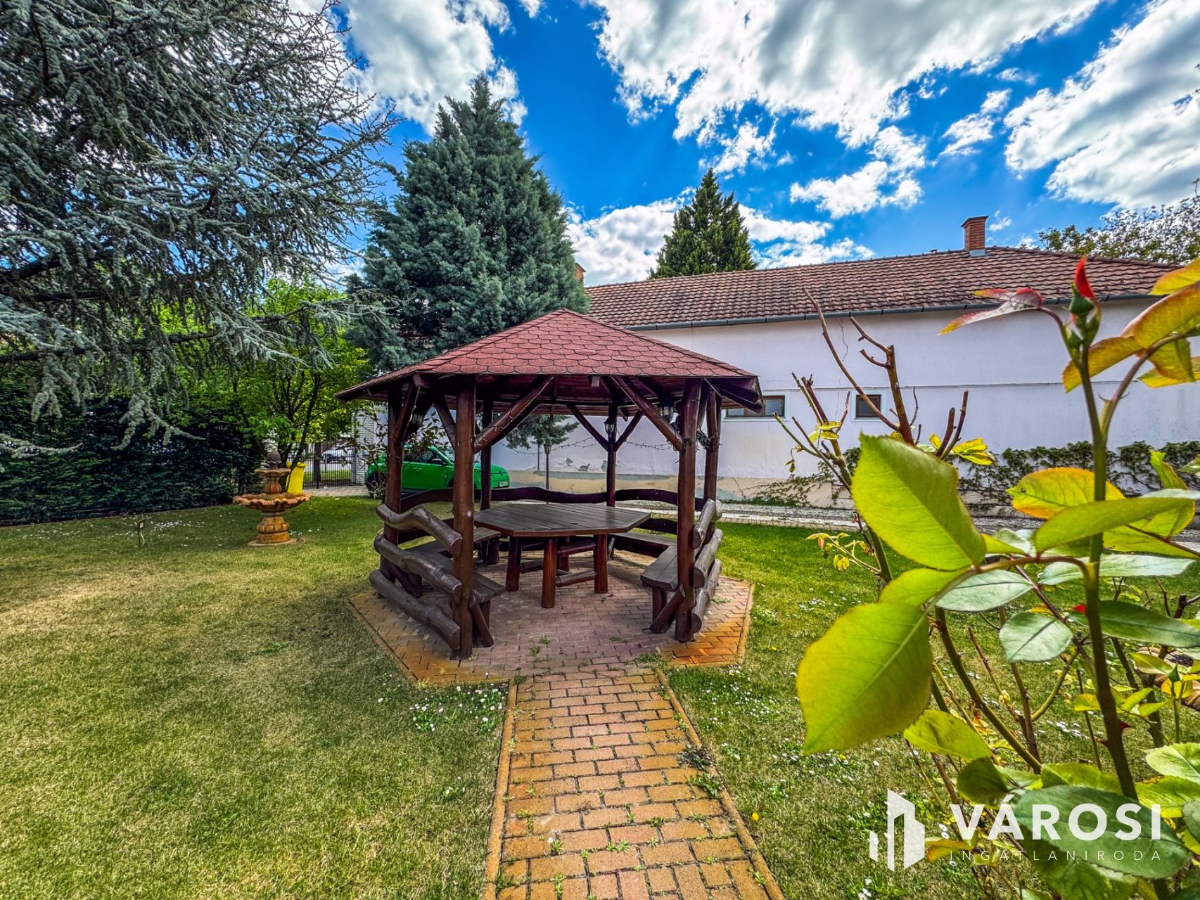 Emellett a telken található még egy 26 nm alapterületű, elektromos kapuval ellátott garázs, egy összközműves, 14 nm alapterületű melléképület, egy fedett kocsibeálló és egy kényelmes filagória is.