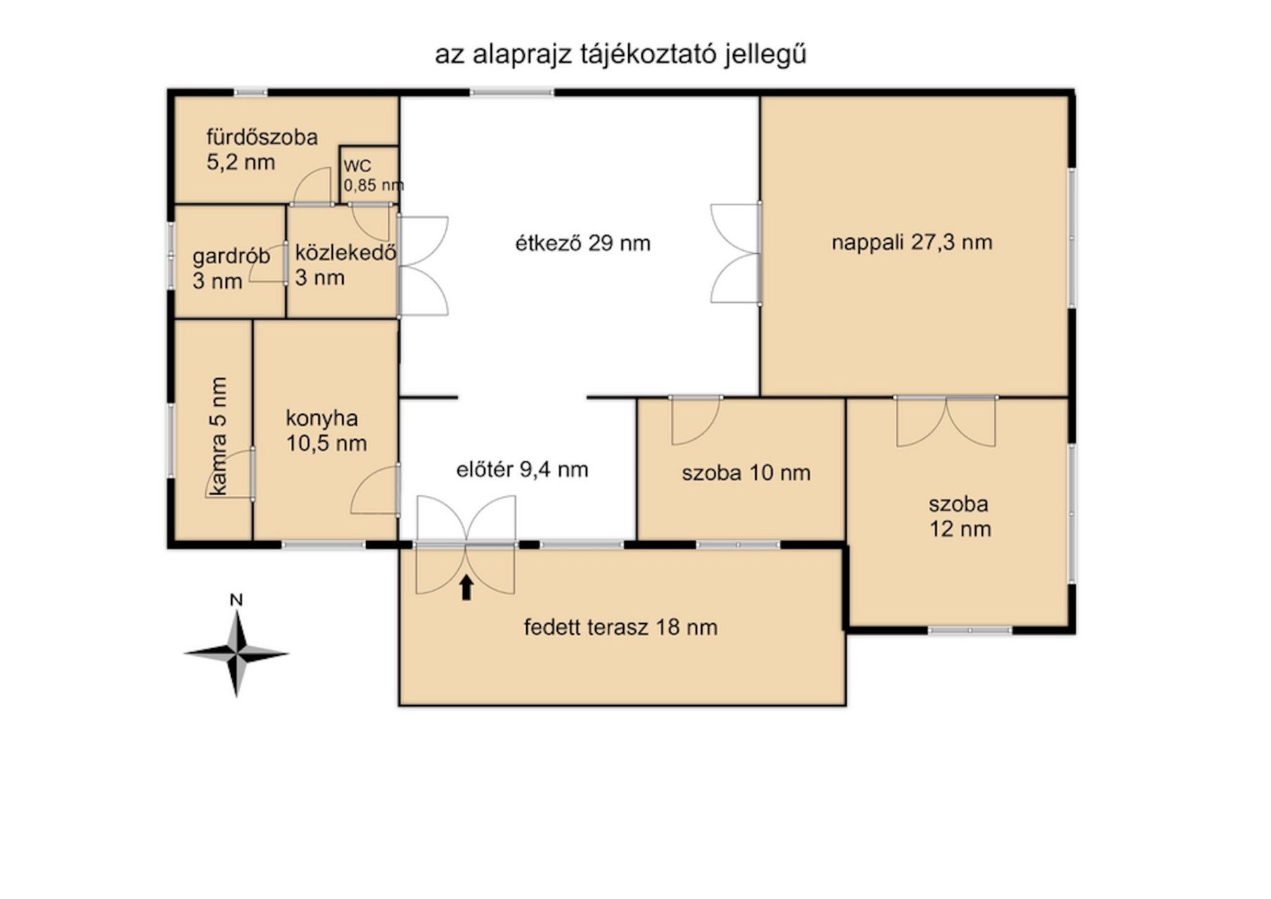- a kertkapcsolatot pedig egy déli fekvésű, 18 nm alapterületű fedett terasz biztosítja