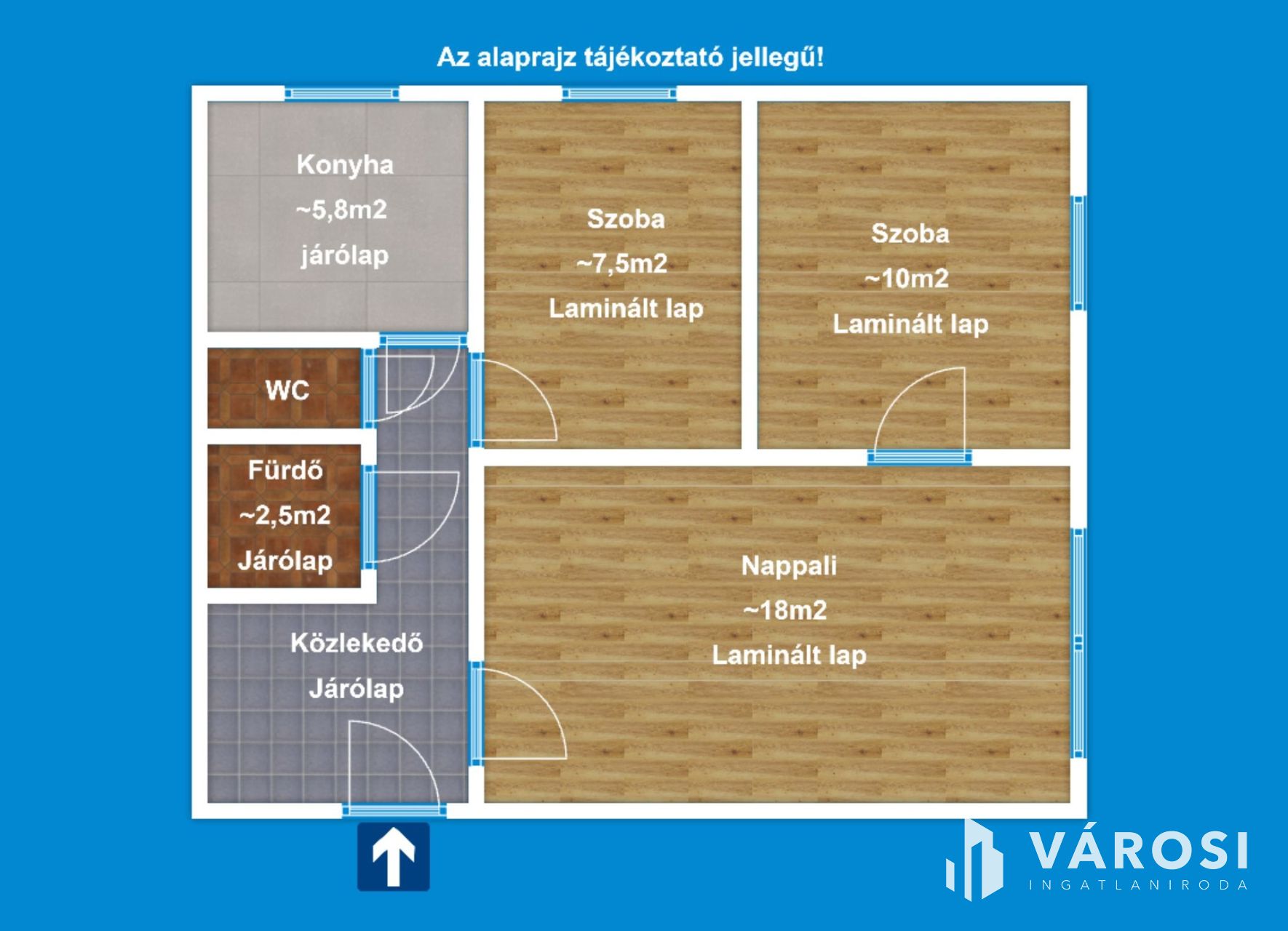 53m2 a lakás alapterülete, jó elrendezésű Nappali+2 szobás. A WC és a fürdő külön található.