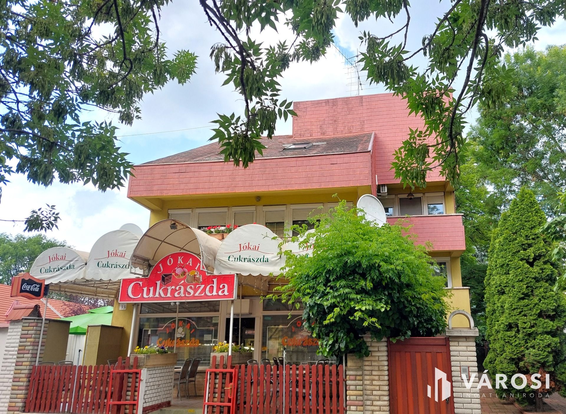 Eladóvá vált Békéscsabán az első nagy vállalkozások egyike. Az ingatlan 1979-ben épült, funkcionálisan három részre osztható, lakás, cukrászda, cukrászüzem. Legnagyobb értéke kivételes elhelyezkedésésében és könnyű megközelíthetőségében rejlik, mivel a belváros kellős közepén található, valamint saját használatú, ingyenes vendég parkoló tartozik hozzá. Az ismert ingatlan telek mérete 640m2, ahol a főépület mögött 40m2 alapterületű cukrászüzem működik. A térkővel burkolt udvarban áll egy zárt mobil garázs elektromos kapuval, 4 fedett kocsibeálló és mindez egy óriás vadgesztenyefa, tuják és virágok társaságában.