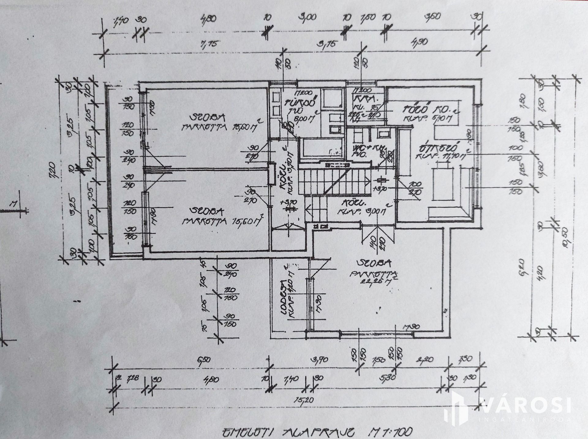 A tetőtér nettó 50m2 alapterületű, 3 szobát és egy gardróbot foglal magába.