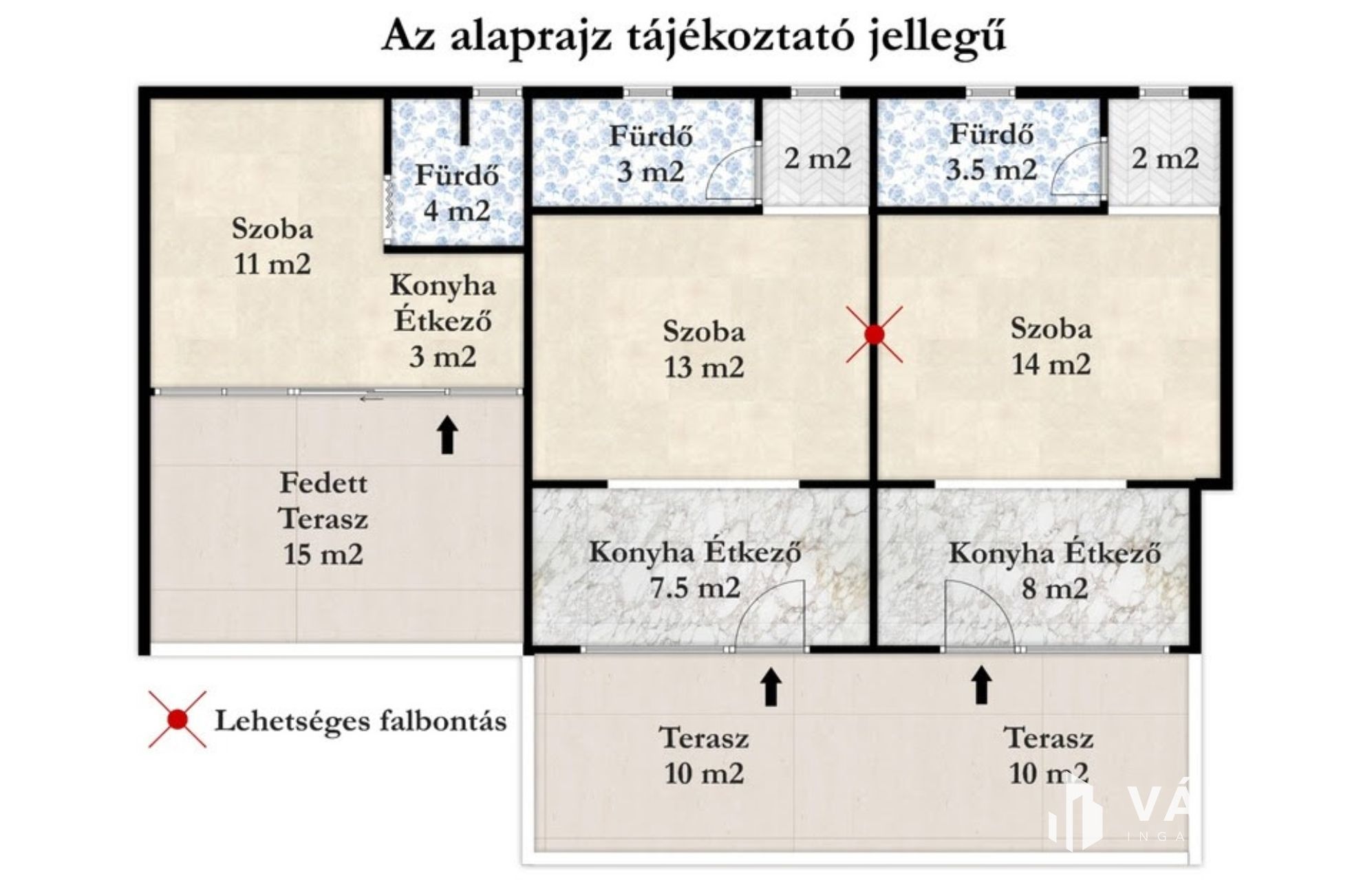Az ingatlan kialakítása ideális többgenerációs használatra is: a teljesen szeparált, kisebb lakrész alkalmas állandó lakhatásra, míg a további két apartman önállóan üzemeltethető. Ez lehetőséget ad arra, hogy a működtetés és felügyelet helyben, folyamatos jelenléttel történjen.