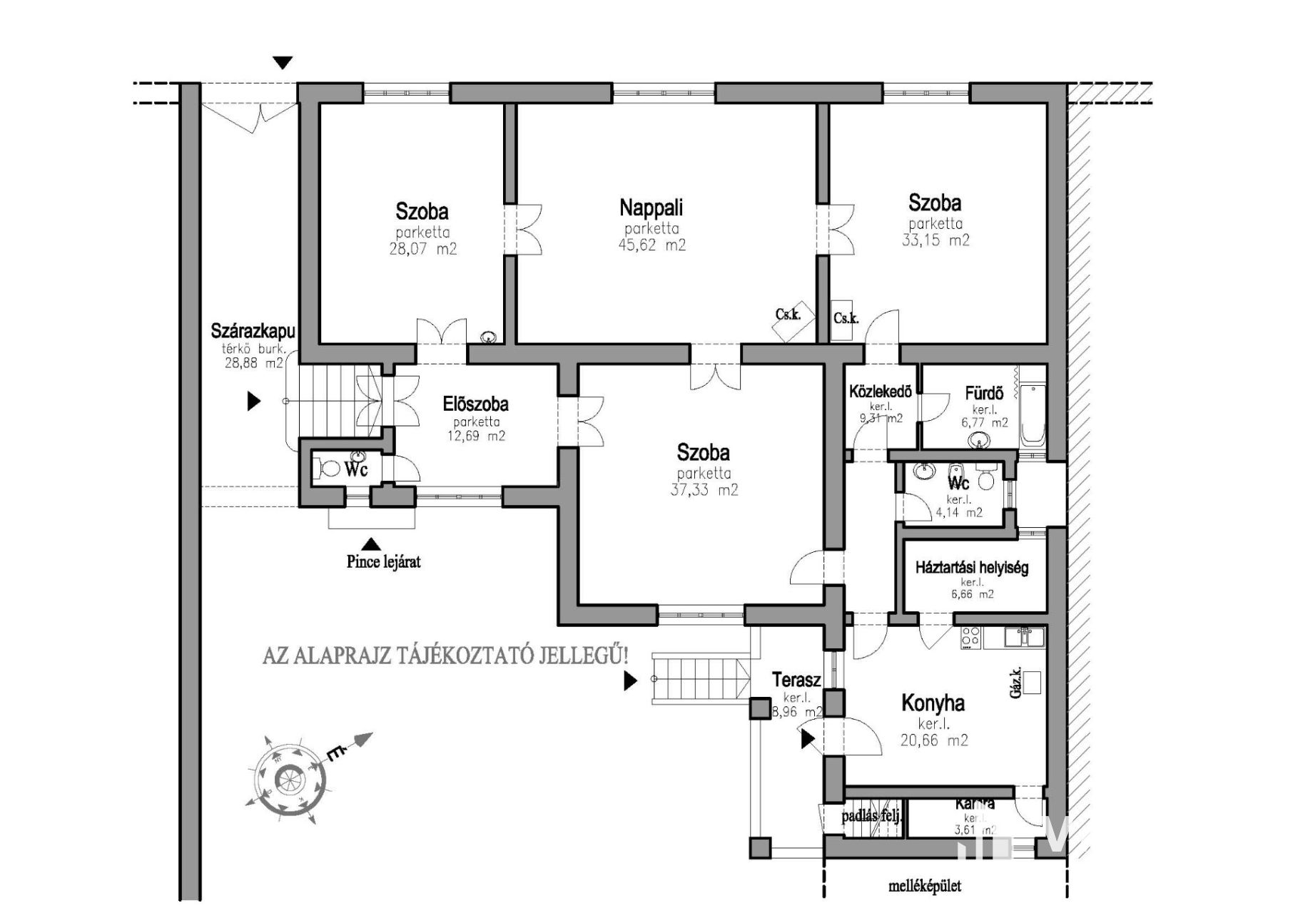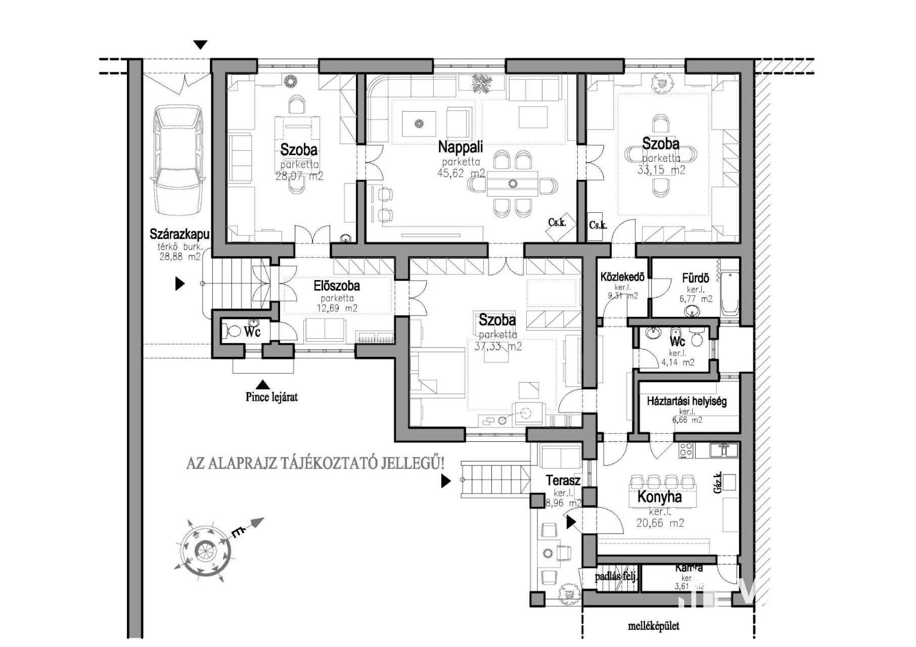 - Nappali: ~45,00 m2