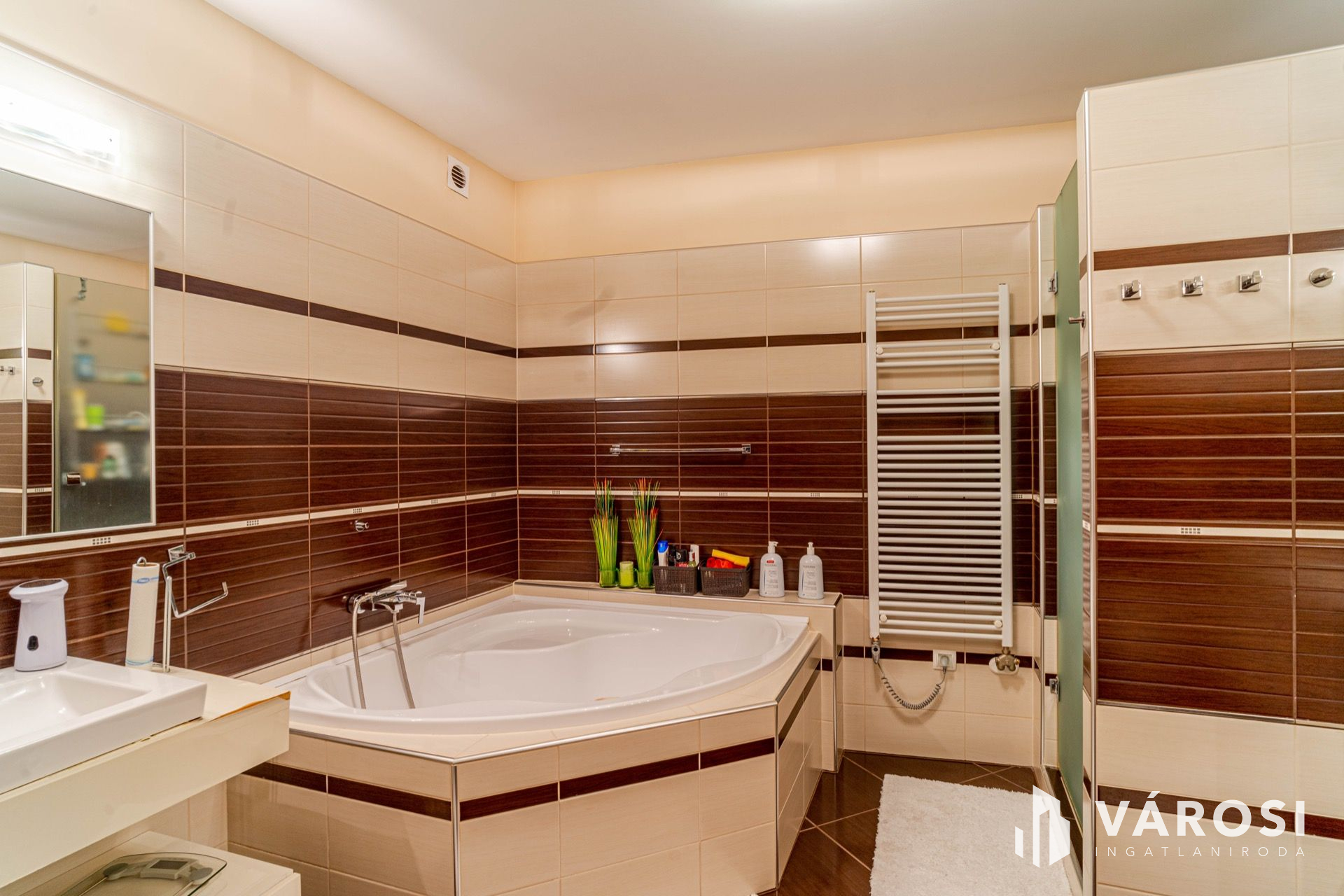 A lakás kifogástalan állapotú, jó átgondolt terekkel rendelkezik, és kapott még külön gardróbot, és háztartási helységet is, ezen felül fürdőben sarokkád és tusoló is található.