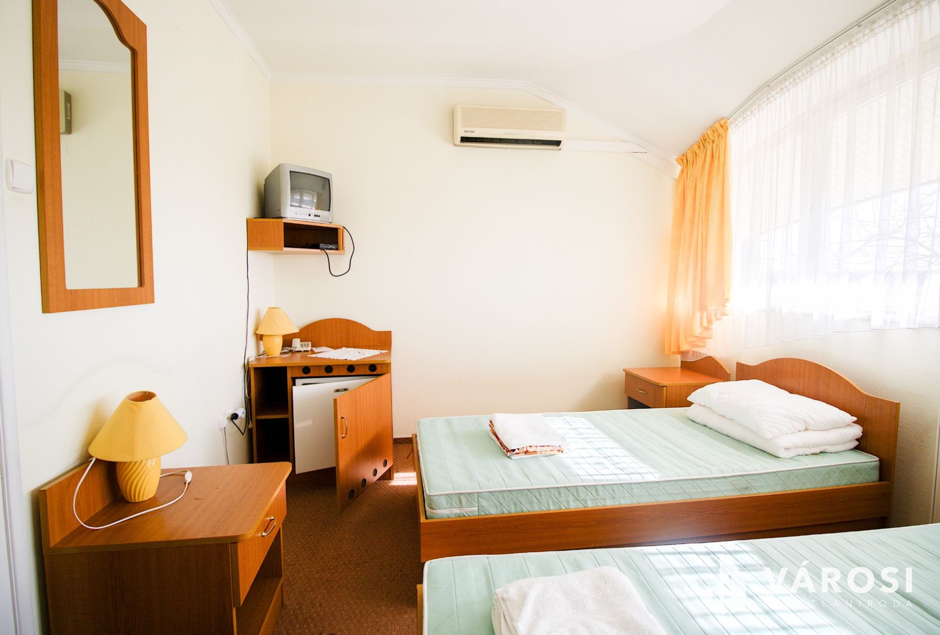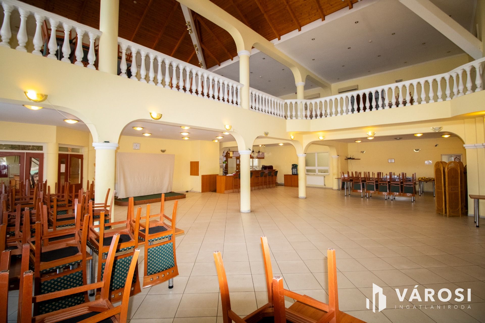 Az épület kialakítása átgondolt: külön vendég- és személyzeti közlekedés, recepciós fogadótér, galériás belső tér, fagerendás látványmegoldások, félköríves ablakok és rendezvényekre alkalmas közösségi helyiségek találhatók benne. A gépészet kiépített, 8 különálló kombi kazán, radiátoros hőleadók és klímák biztosítják a hűtést-fűtést, 3×100 A elektromos kapacitással és tűzjelző rendszerrel. A konyhai és kiszolgáló helyiségek engedélyezetten működtek, ezért a létesítmény viszonylag gyorsan újraindítható.