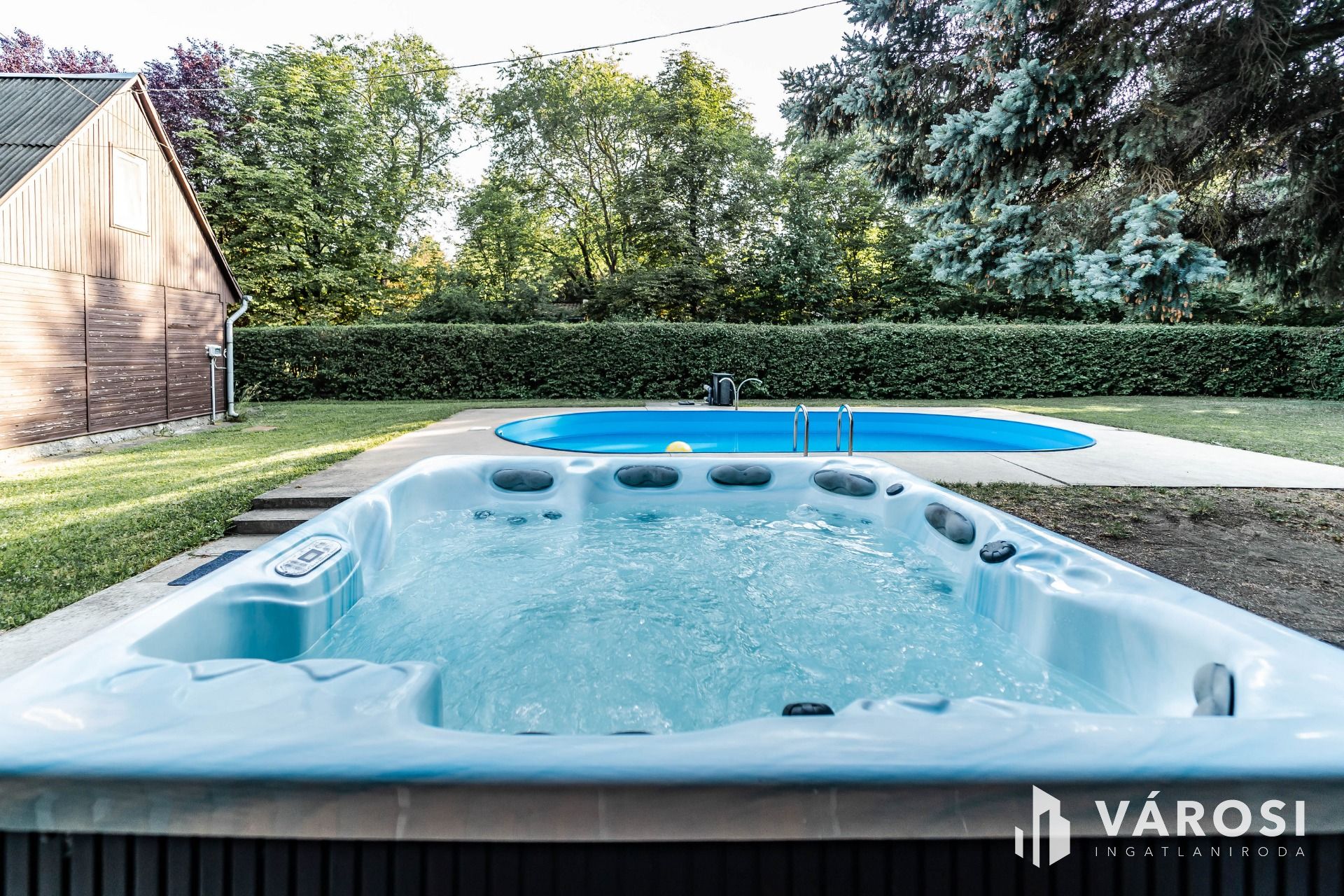 A 2089 m²-es, parkosított telken medence, jakuzzi, kemence és hangulatos kerti pihenőhelyek szolgálják a kikapcsolódást, emellett zárt parkolási lehetőség és wifi is biztosított. Az ingatlan teljes berendezéssel és kültéri tartozékokkal együtt kerül értékesítésre.