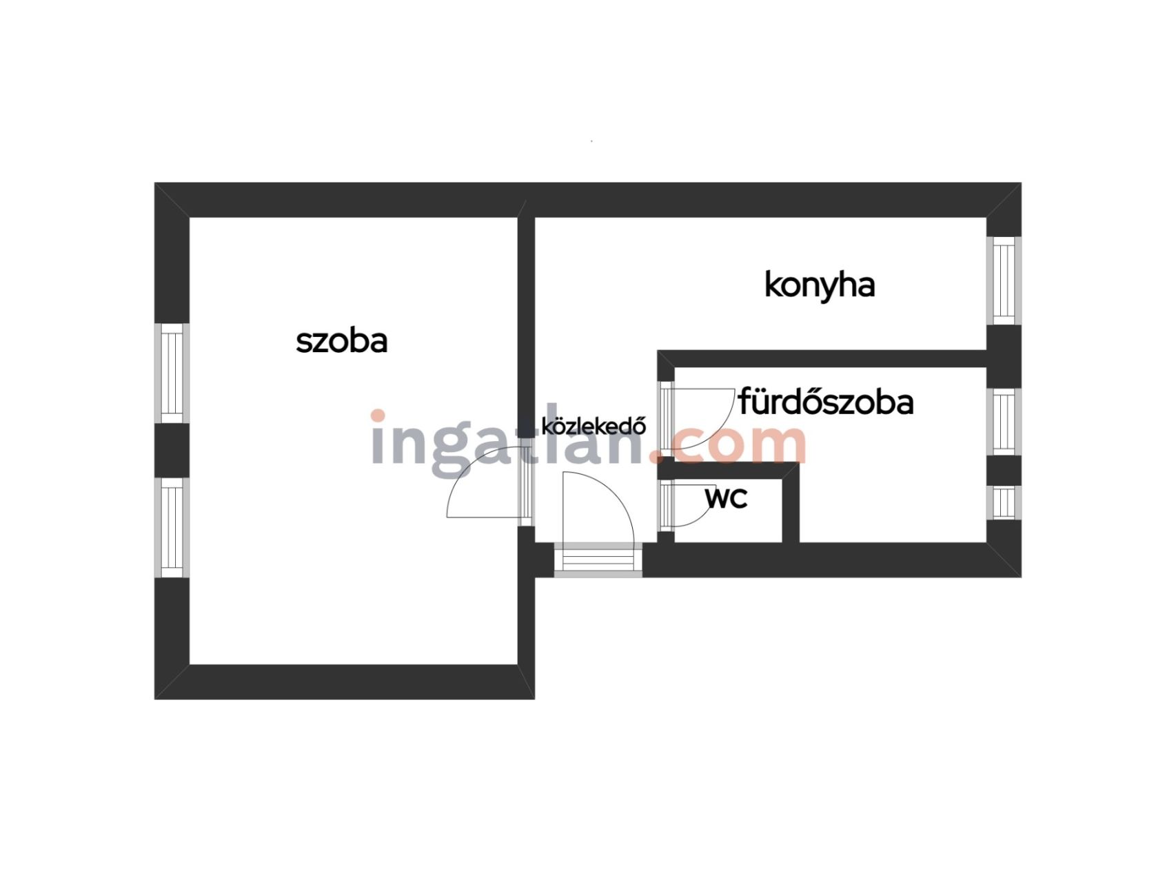 egyszobás , de a tér külön hálórésszel is jól berendezhető