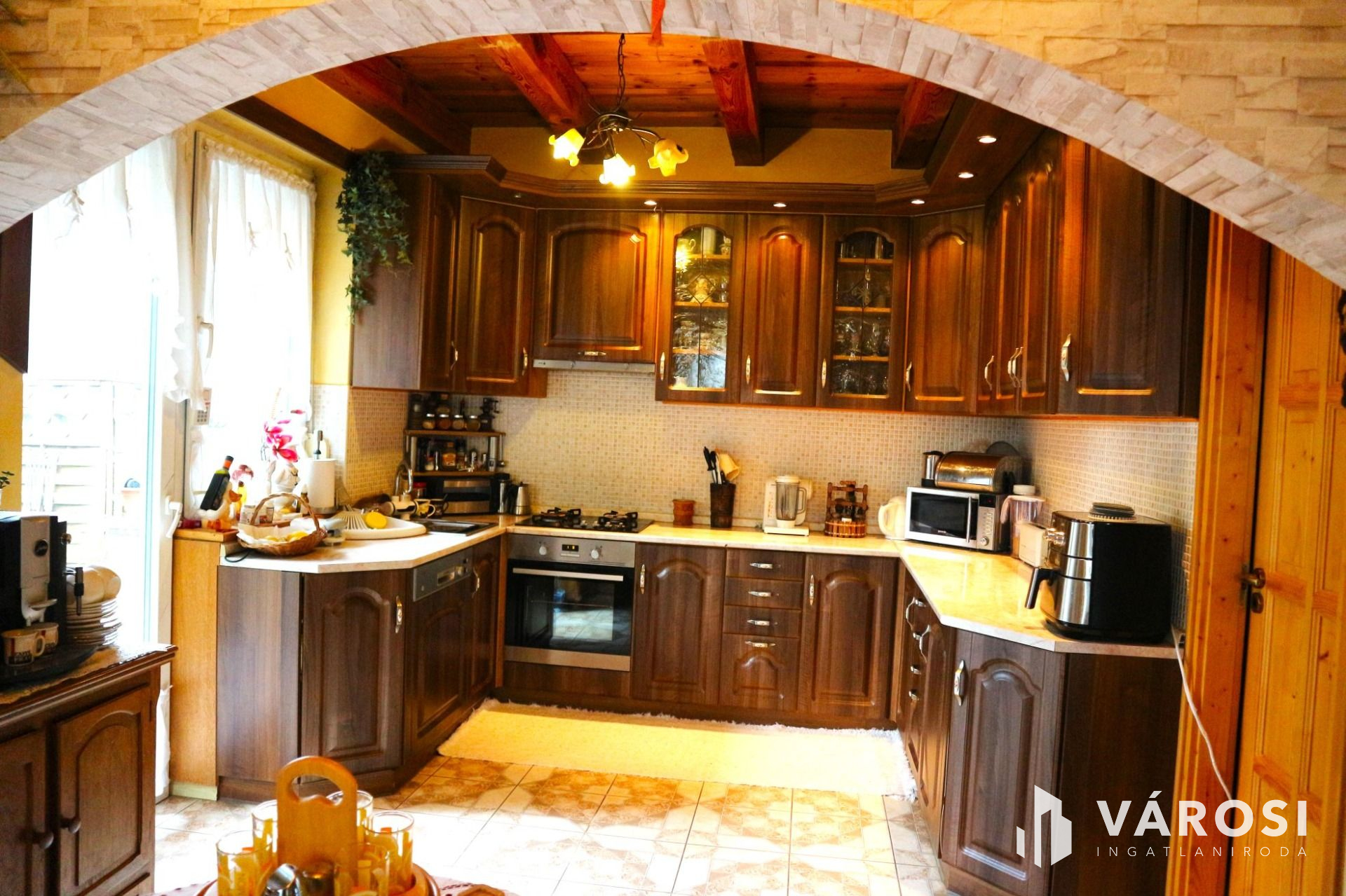 In the interior of the property, there is a modern American kitchen with spotlights, which provides a comfortable home for lovers of gastronomy and people with a stomach! Thanks to the new electricity network and water pipelines, we don't have to worry about old, outdated lines. And we can comfortably store our household items in our own storage. Roof covering bitumen shingles.The property also has a wonderful built-in fireplace, which makes winter evenings even more intimate and romantic, accompanied by a small mulled wine. The rustic ceiling beams reinforce this feeling even more. The property has three-phase electricity, so we can use any larger machine. And the built-in wardrobes make the property even more practical, because it can absorb a lot of clothes!