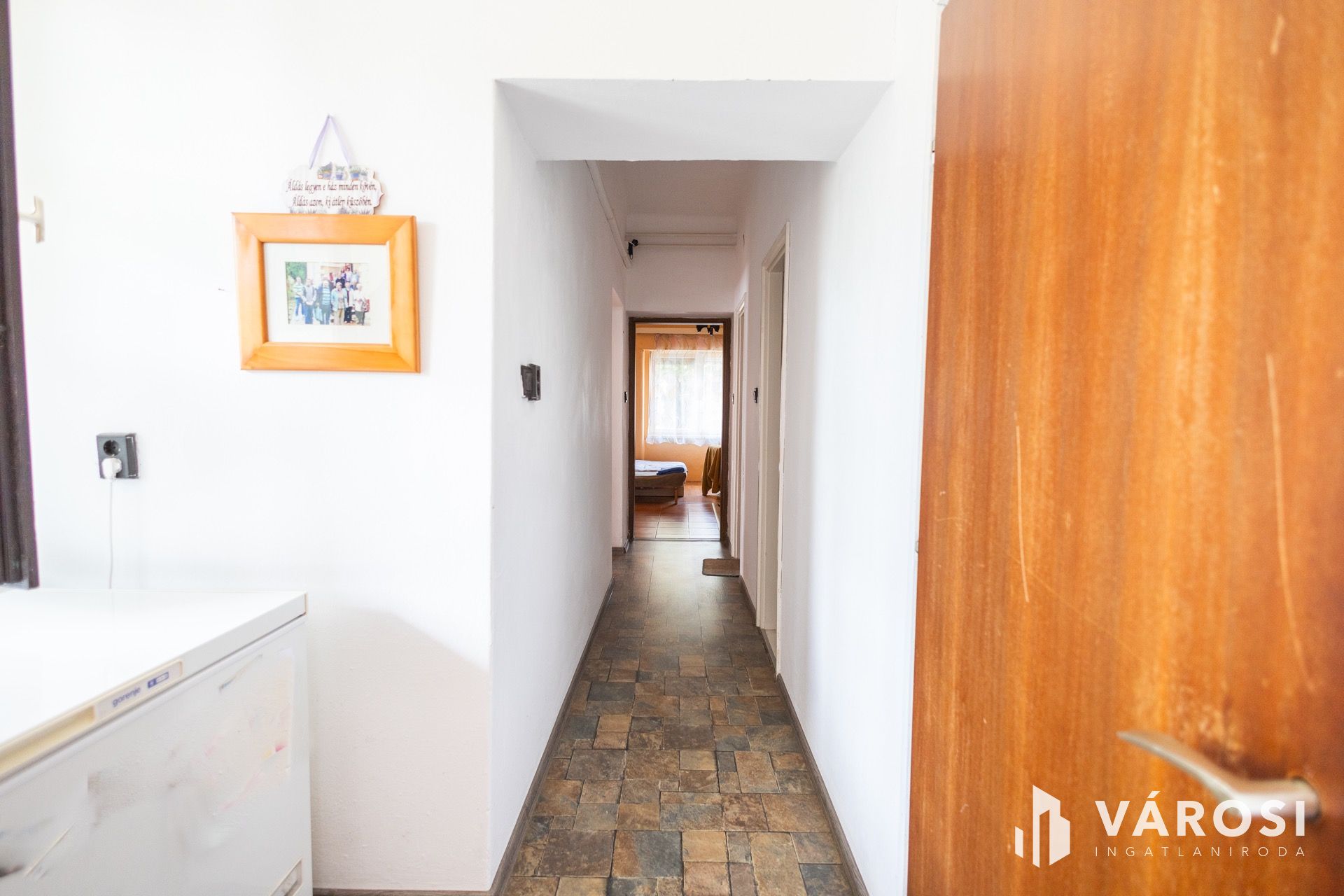 Gyula kedvelt városrészén, az Újvárosban eladóvá vált egy 95 nm alapterületű családi ház és a hozzá tartozó 1504 nm alapterületű dupla telek. A ház tégla lábazatra épült vert falazattal, a födém paticsolt. A ingatlanban 3 tágas szoba, két fürdőszoba, egy előszoba, egy konyha és kamra került kialakításra. Az otthon melegéről elektromos panelek, gázkonvektorok és egy szép csempekályha gondoskodik. Az ingatlanban fa nyílászárók kerültek beléptésre, emellett 2020-ban az utcafronti ablakokat és a bejárati ajtót műanyagra cserélték, emellett megtörtént a fürdőszoba felújítása, illetve a téglafalazatú konyha külső hőszigetelése. A házban megtörtént a villanyvezetékek cseréje és 3x16A-ra történő bővítése, melynek teljes áramellátását 16 paneles napelem rendszer biztosítja. A kertkapcsolatot egy 19 nm alapterületű terasz biztosítja. A telken egy garázs, melléképület és fóliák is helyet kaptak.