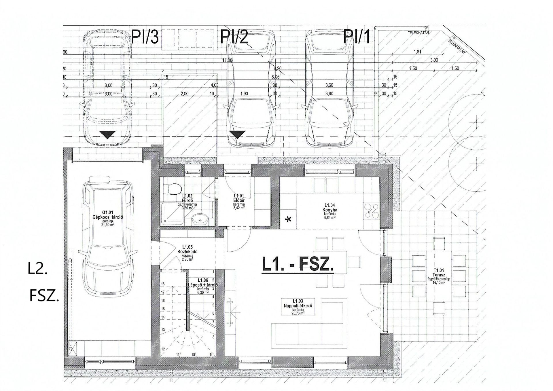 - 3 db gépkocsi parkolót