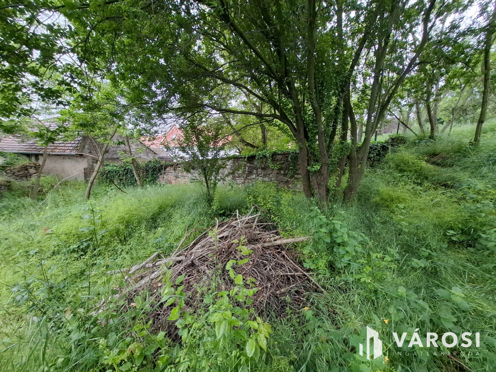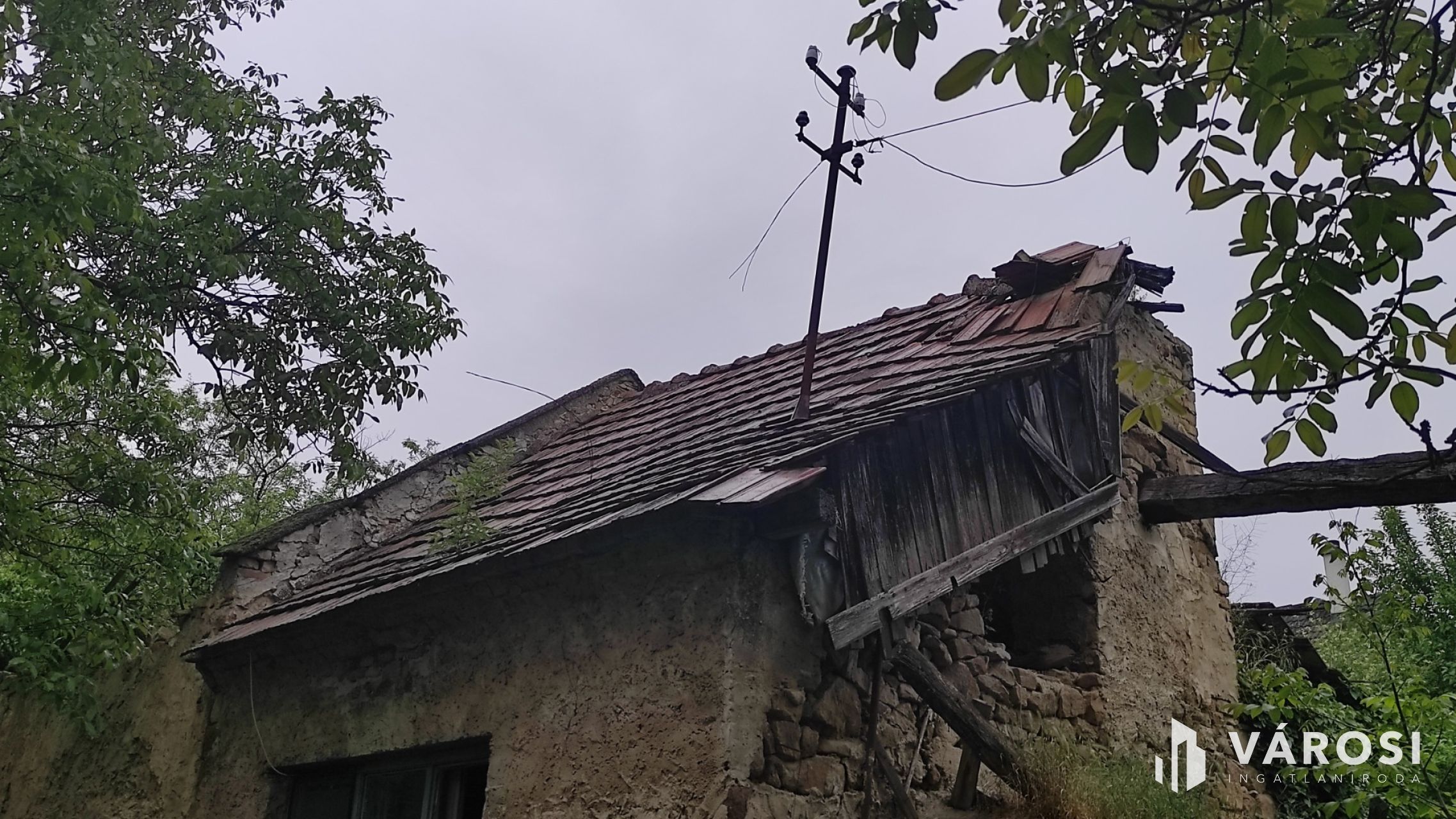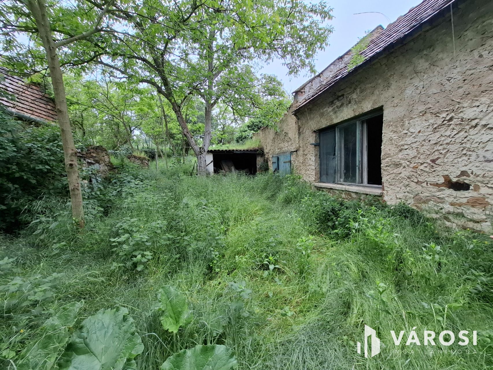 A valamikor szebb napokat megélt épület, az előtte álló ugyancsak romos épület udvarán keresztül szolgalmi joggal megközelíthető. A domboldalon elnyúló telek területe 504 m2, - kilátással a kővágóörsi hegyekre, - oldalhatáron beépített. Az alaprajzon feltüntetett épület falai állnak, helyiségei jól kivehetők. Két szoba, konyha, nappali, fürdőszoba volt a régi házban.