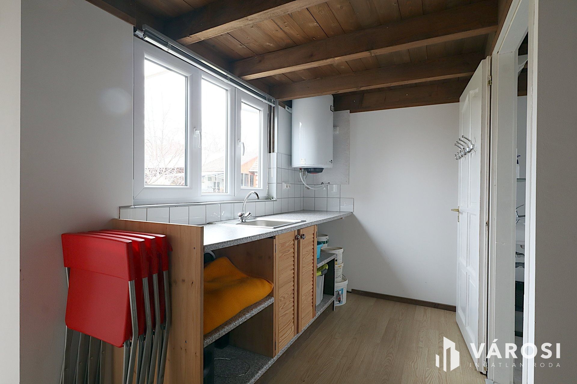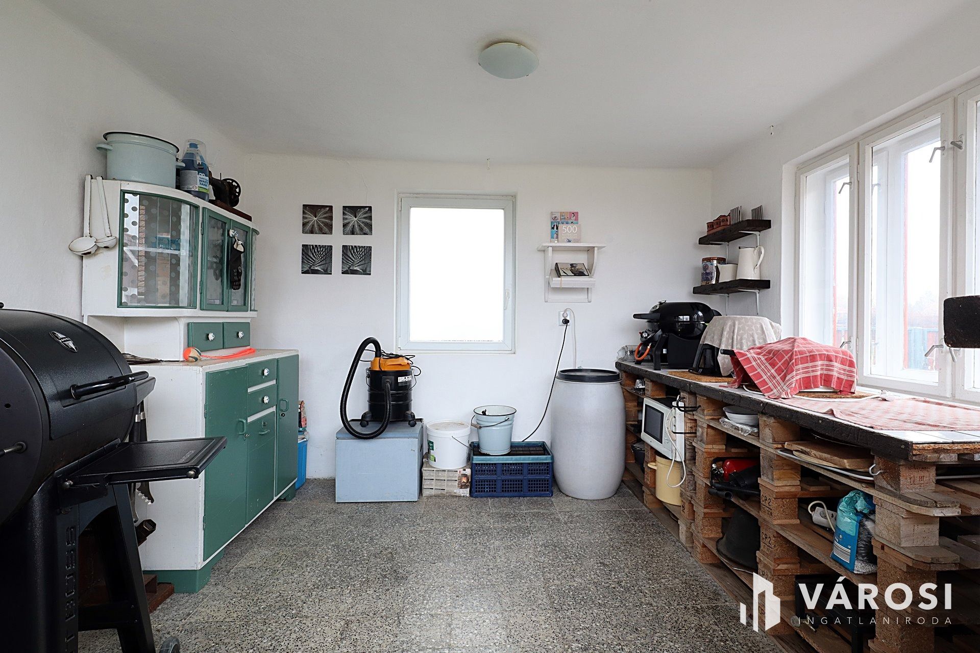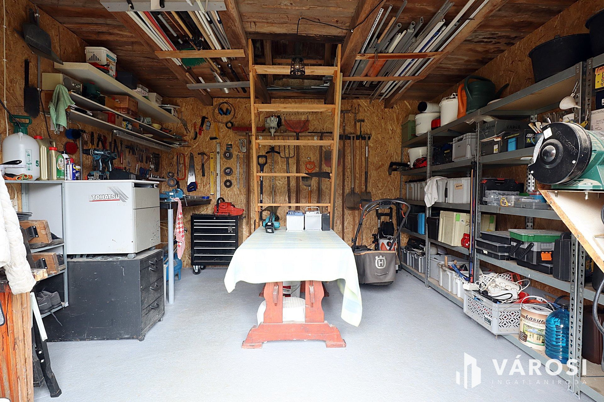 Az udvari gépjárműbeálló mellett egy dupla garázs is helyet kapott, így bőséges parkolási lehetőség áll rendelkezésre. Hobby barkácsoláshoz pedig a tágas műhely is adott. Az ingatlan összközműves, de egy ásott kútra szerelt házi vízmű is szolgáltatja a jó minőségű vizet. A kamera rendszer pedig gondoskodik az ingatlan biztonságáról.
