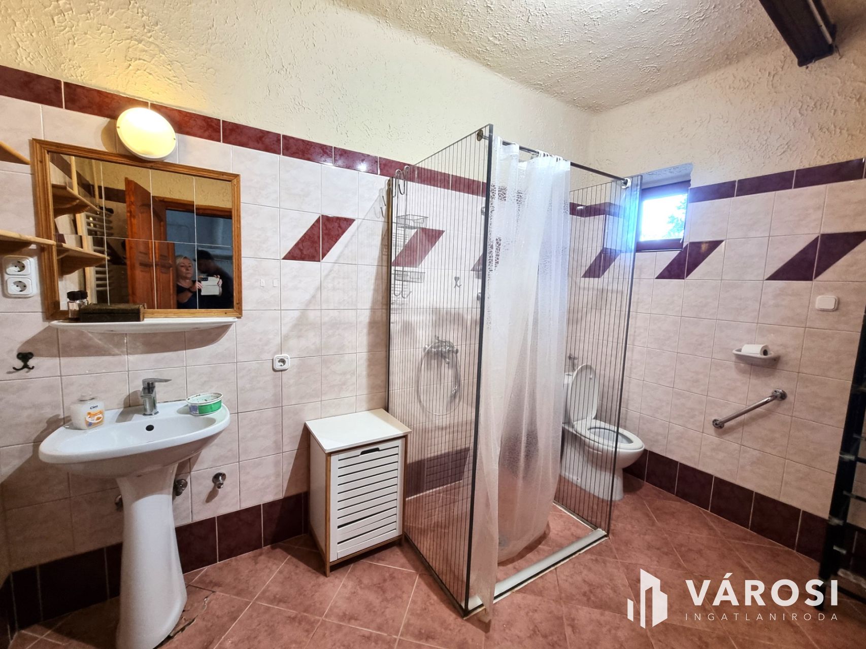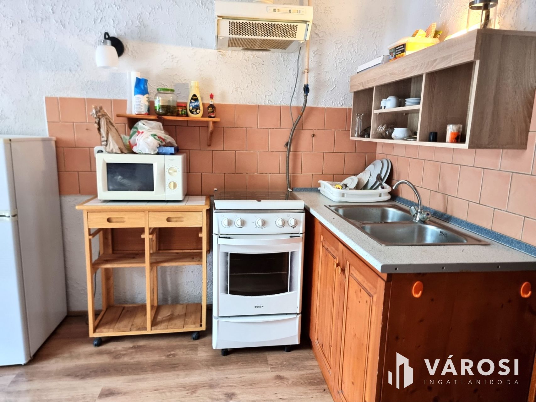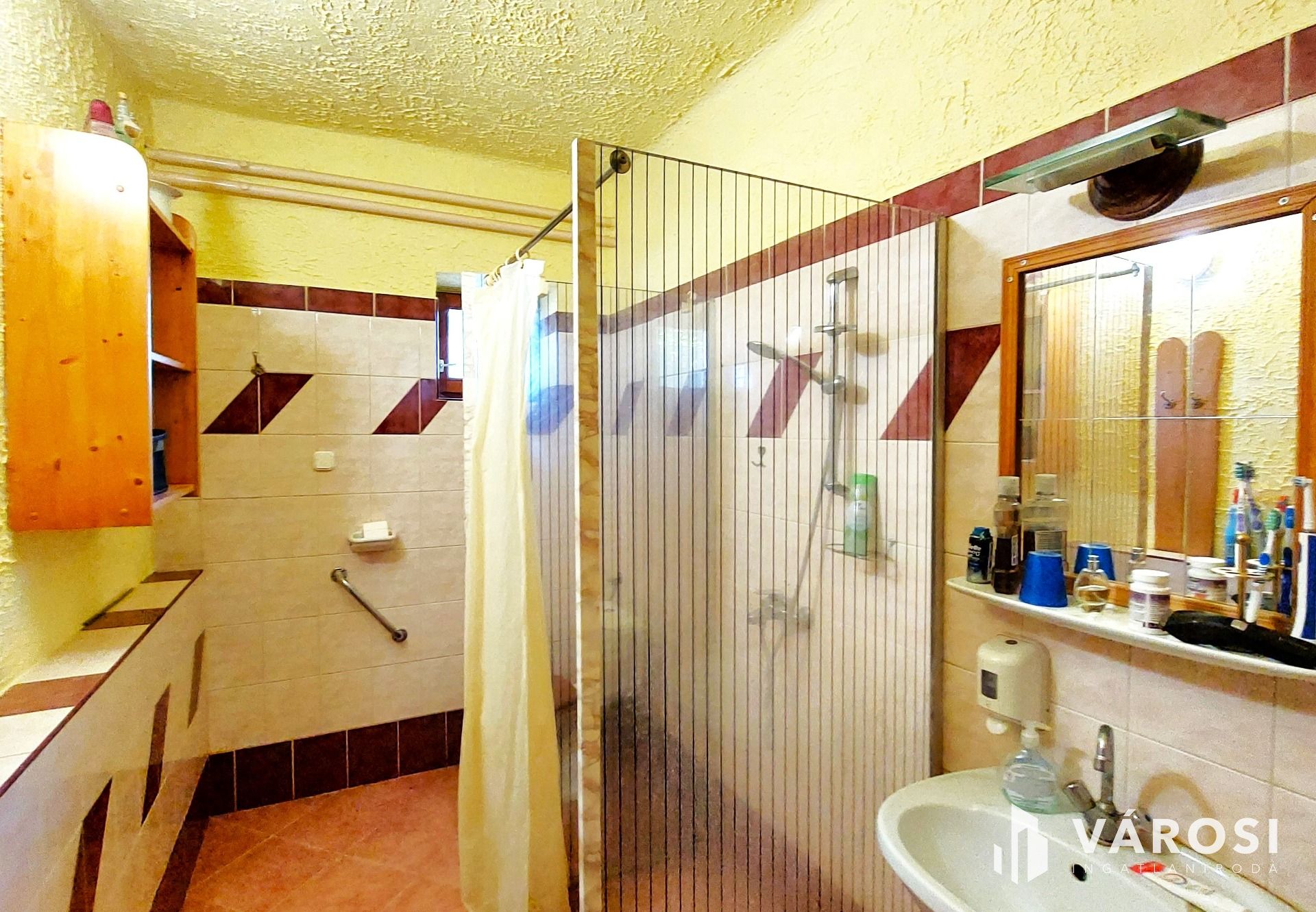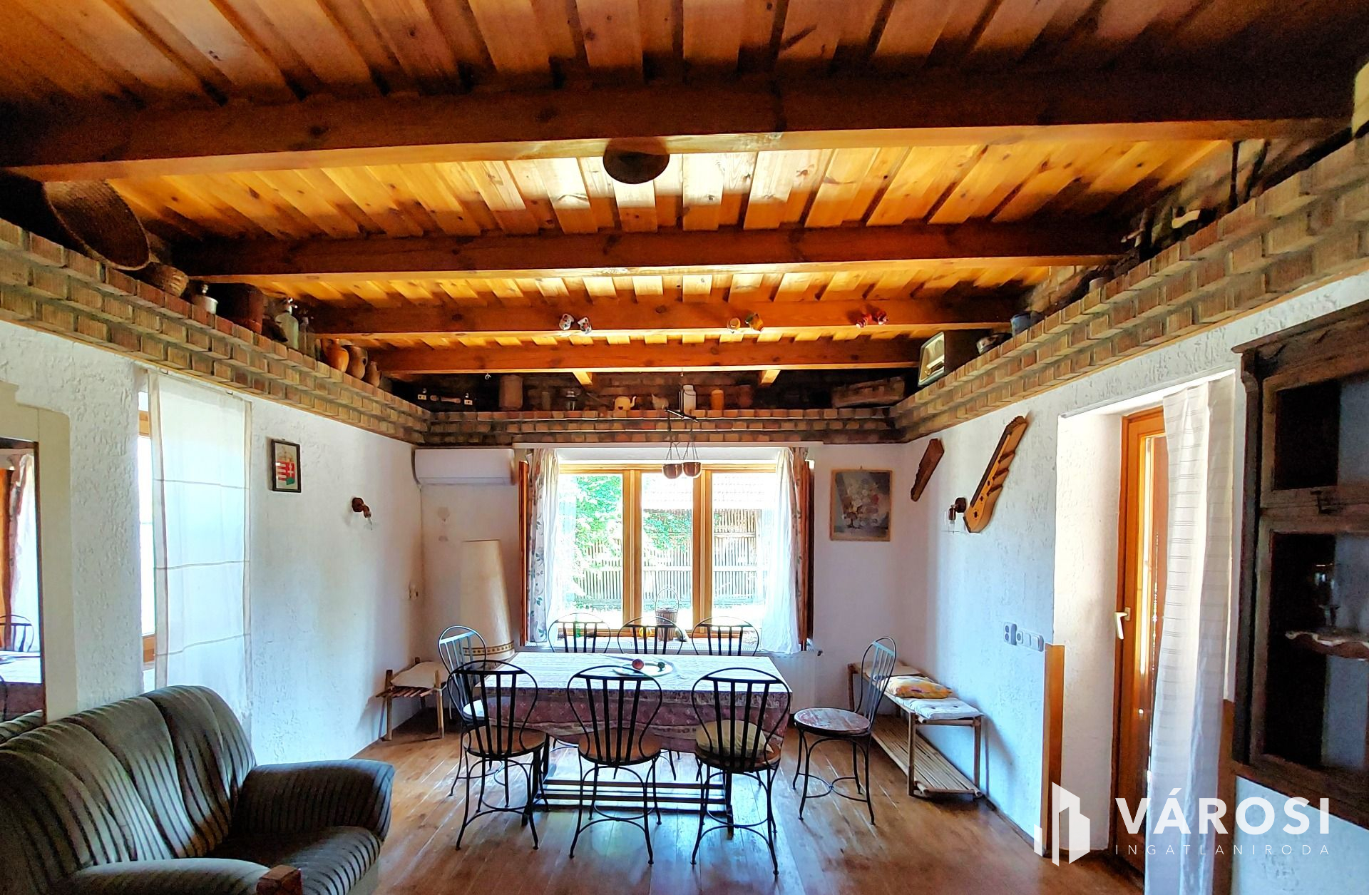 A földszinten 35m2 toszkán stílusban megálmodott nappali-konyha-étkező, tágas fürdőszoba és recepció található. A konyhasarok színes, mázas csempével kirakott, vidám, hangulatos éke az egész lakásnak. Telis-tele a ház éveken át gyűjtögetett régiségekkel, antik tárgyakkal. Ha szeretnék ezt az elbűvölő ingatlant teljes berendezéssel megvásárolni, mángorlóval, szakajtóval együtt, az külön megegyezés tárgyát képezi...
