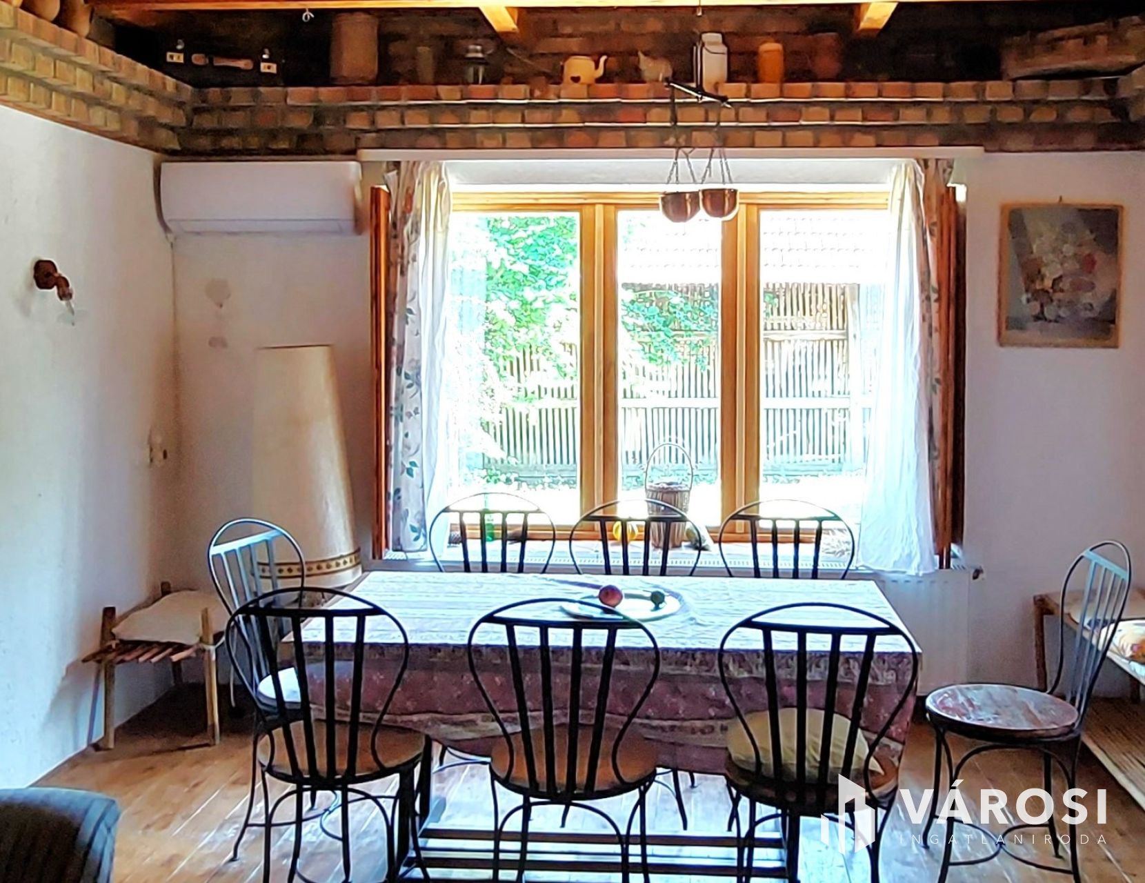 A földszinten 35m2 toszkán stílusban megálmodott nappali-konyha-étkező, tágas fürdőszoba és recepció található. A konyhasarok színes, mázas csempével kirakott, vidám, hangulatos éke az egész lakásnak. Telis-tele a ház éveken át gyűjtögetett régiségekkel, antik tárgyakkal. Ha szeretnék ezt az elbűvölő ingatlant teljes berendezéssel megvásárolni, mángorlóval, szakajtóval együtt, az külön megegyezés tárgyát képezi...
