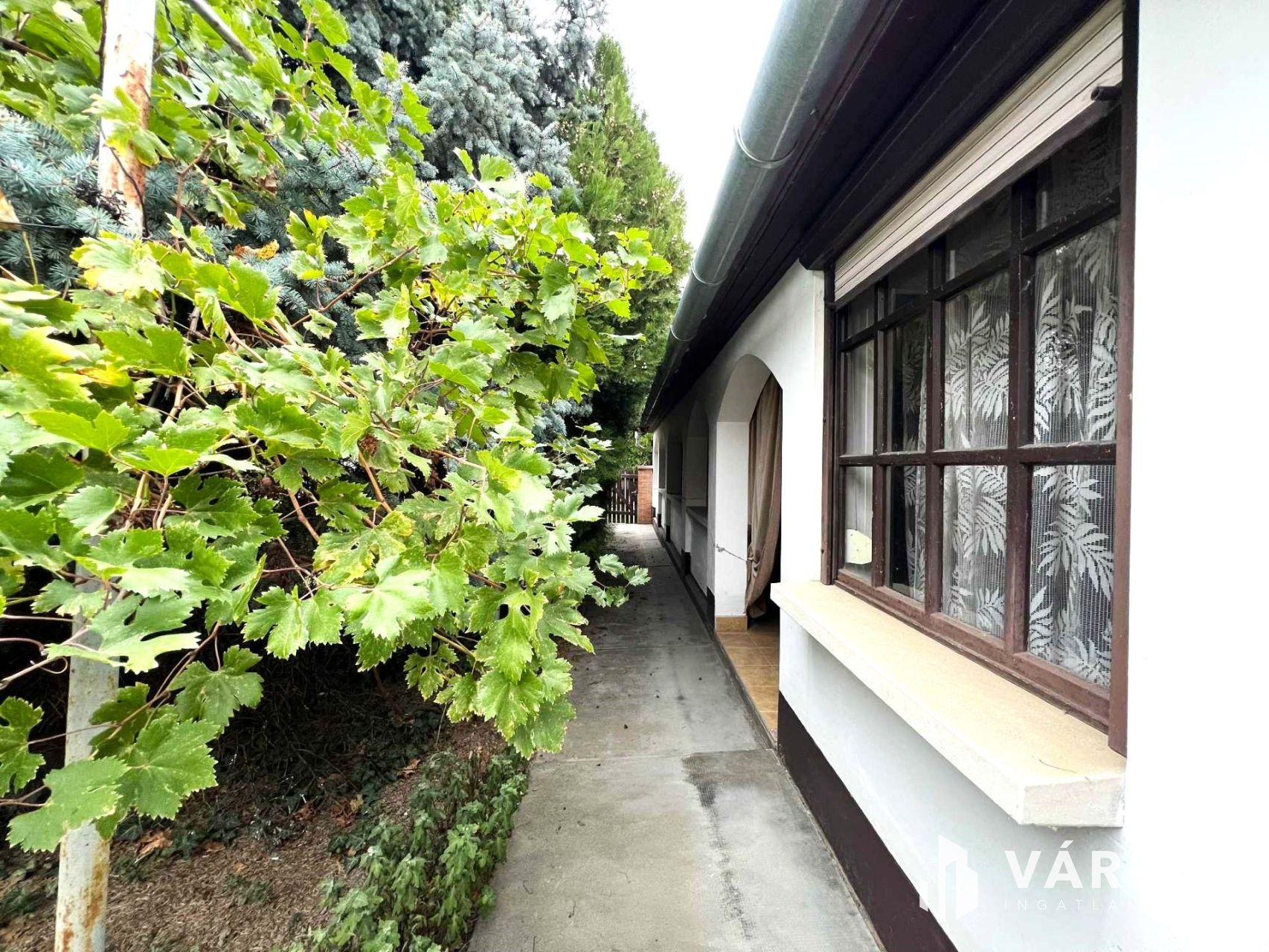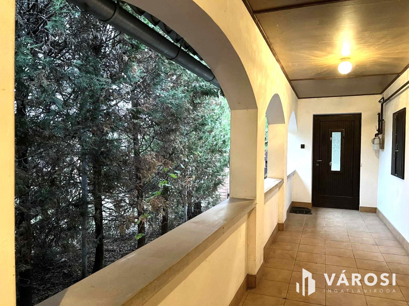 Az ingatlanhoz tartozik egy fedett de nyitott veranda, ahol kényelmesen pihenhetünk, és amelyen keresztül érkezünk a házba.