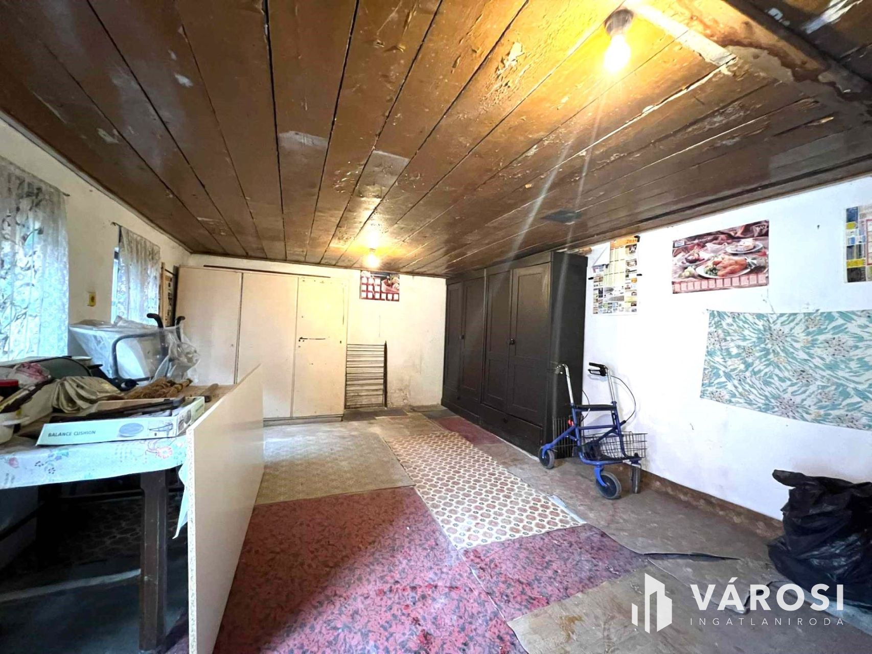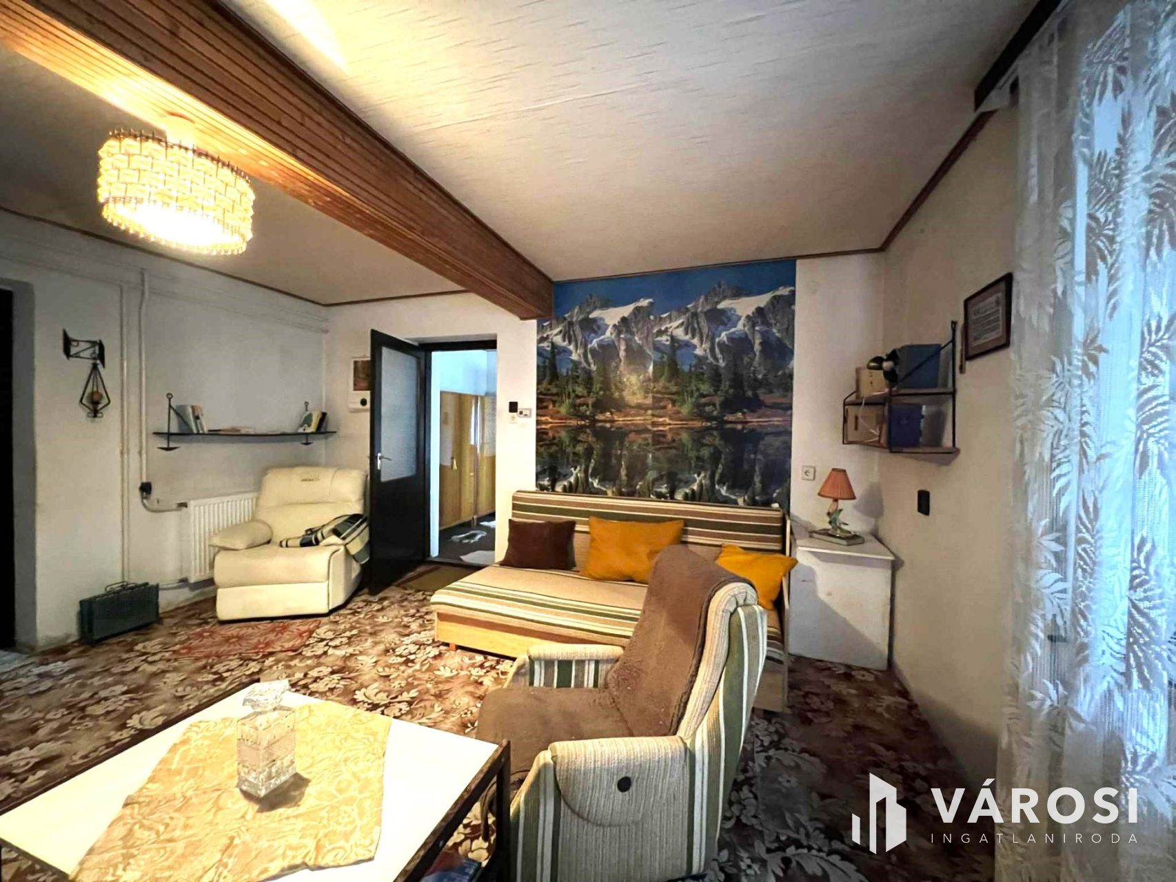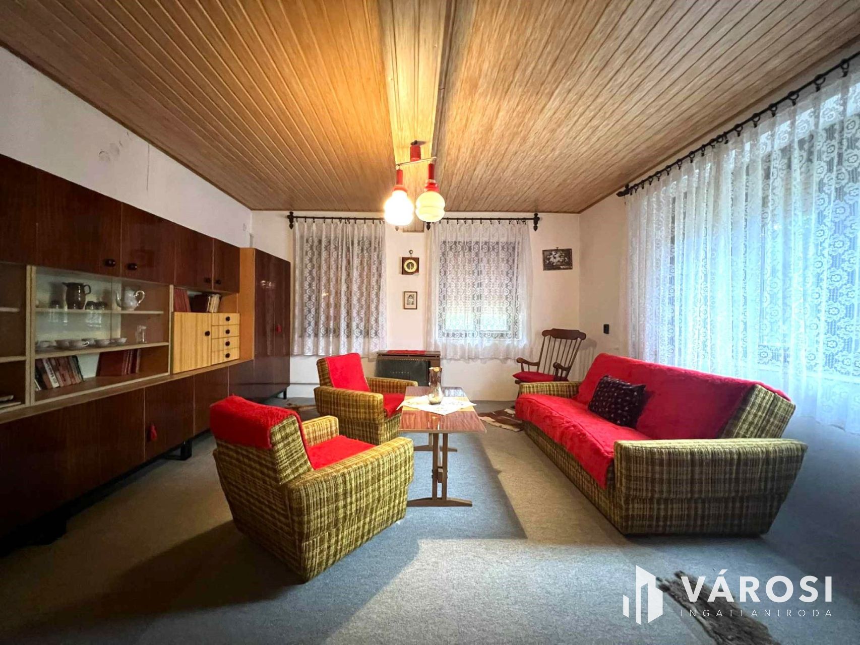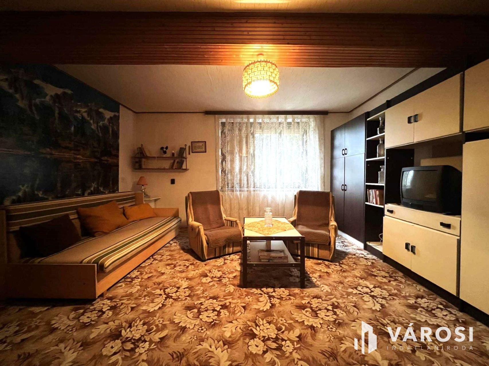 -3 szoba, világos, padlószőnyeggel burkolt szobák, a nagy szoba mennyezete lambériázott.