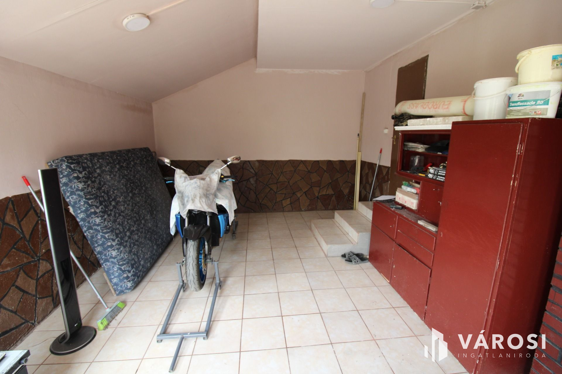 Eladó Tótkomlós városában, egy kertvárosias környezetben fekvő családi téglaház. A kétszintes ingatlan 1390 m²-es telken helyezkedik el, összesen 98 m² laktérrel rendelkezik. A házba belépve egy impozáns méretű amerikai-konyhás nappaliba érünk, mellyel szemben egy tágas, kellemes méretű szoba nyílik. A földszinten külön WC és egy sarokkádas fürdőszoba, valamint a konyha melletti spájzból juthatunk a garázsba. Az emeleten három kisebb méretű szobácska található, melyek lamináltpadlóval burkoltak az egyikből pedig egy tágas erkély nyílik. A falazat és a tetőszerkezet jó állapotú, a villamoshálózat felújítása megtörtént. Az udvarban fúrtkút található, valamint biztosított az udvari gépjárműbeálló lehetőség is.