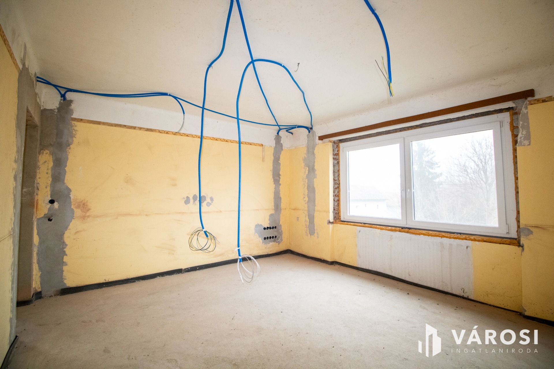 A 721 m²-es, rendezett telken álló lakóház 2022-ben kezdett teljeskörű átalakuláson esett át. A munka lényege az volt, hogy egy régi alapokra épülő ingatlant teljesen újragondolt formában, modern technológiákkal és mai trendeket követő architektúrával frissítsenek fel. Ennek köszönhetően a ház minden statikai és műszaki elemében egy újépítésnek megfelelő struktúrát kapott: beton alap, tégla falazat, vasbeton födém és modern, lapostetős kialakítás adja a szerkezeti alapot. Teljes víz- és szennyvízrendszer készült, a villamoshálózat háromfázisúra, 3×25 A teljesítményre lett bővítve, a rendszer pedig előkészítésre került napelemek fogadására. A fűtésről vadonatúj kombikazán gondoskodik, teljes padlófűtéssel, amely a teljes alsó szinten biztosítja a modern, energiatakarékos működést. A falakba és nyílászárókba is a legmodernebb anyagok kerültek: antracit színű, hőszigetelt műanyag ablakok, valamint elektromos szekcionált garázskapu, amelyhez a garázsban elektromos autótöltési lehetőség is adott.