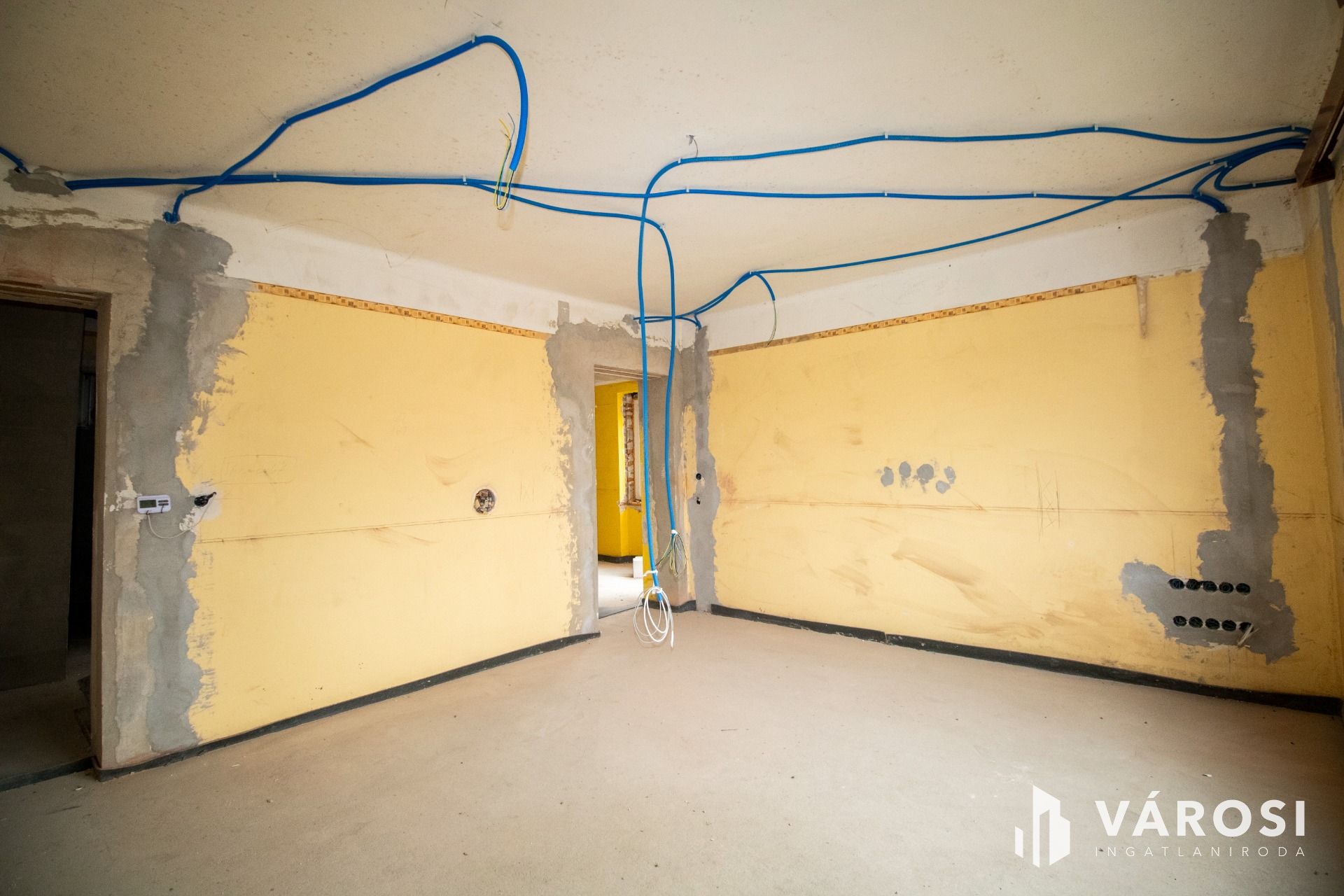 A ház jelenleg körülbelül 70%-os készültségi fokon áll. Szerkezet, gépészet, fűtés, nyílászárók, elektromos rendszer, vízhálózat mind készen vannak. Az, ami még hátravan – burkolatok, szaniterek, konyhabútor, álmennyezetek, belső szerelvényezés –, már inkább esztétikai és belsőépítészeti feladat, nem pedig műszaki próbatétel. Ennek óriási előnye, hogy a leendő tulajdonos valóban saját igényei szerint fejezheti be az otthont, anélkül, hogy bontani kellene.