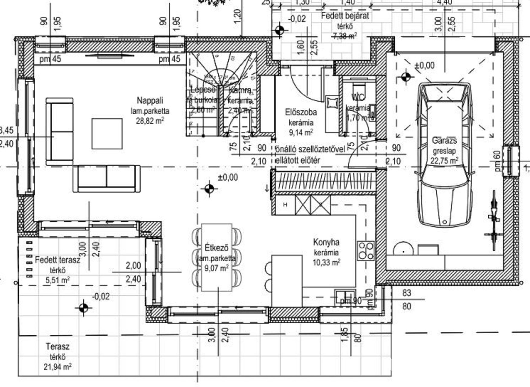 Tágas, világos terek, kényelmes elrendezés. Nagyobb családok számára is alkalmas ház.