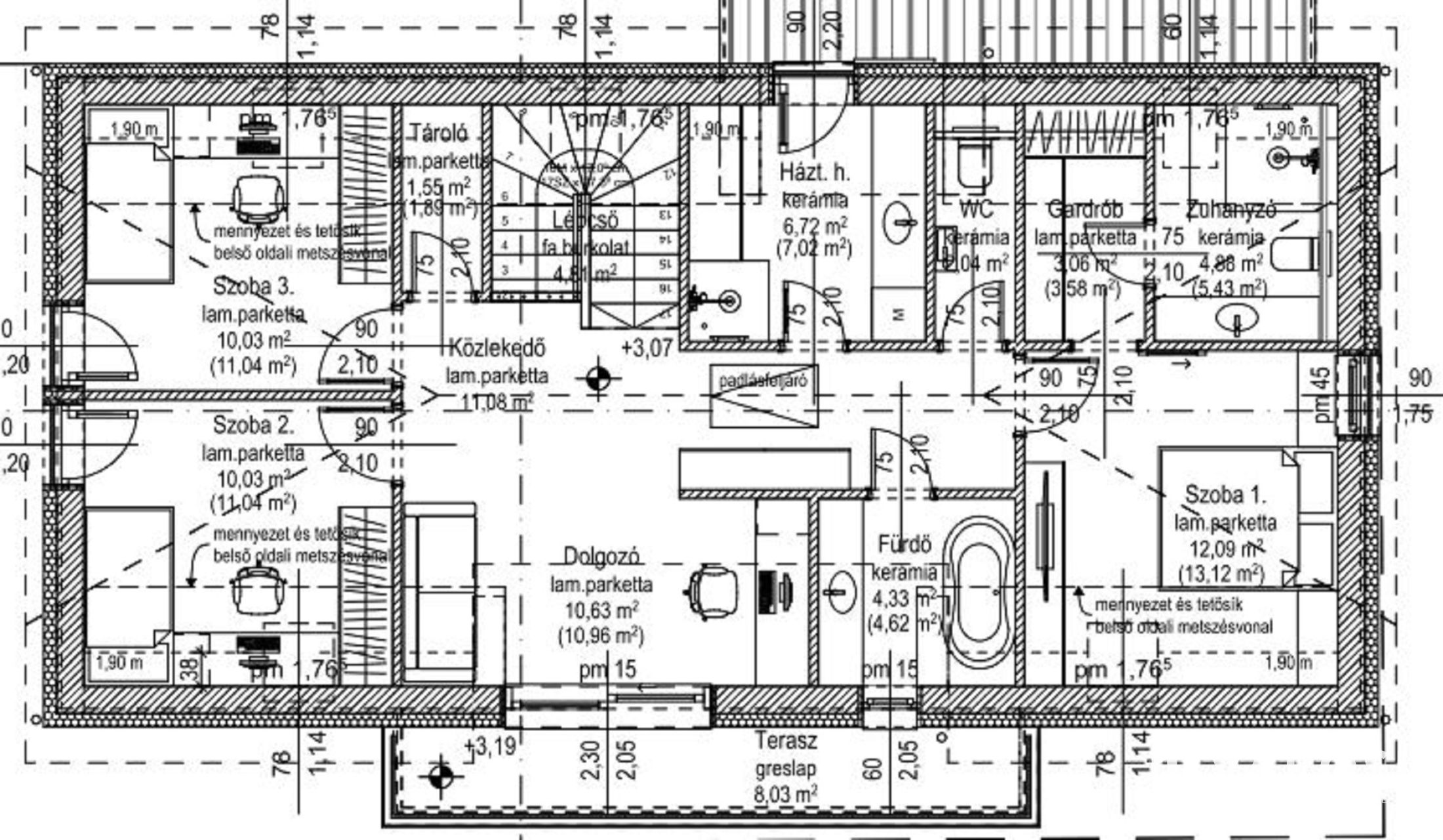 – 186 m² hasznos alapterület: Amerikai konyhás nappali+ étkező, 4 szoba, és 3 fürdőszoba és 2 külön wc.