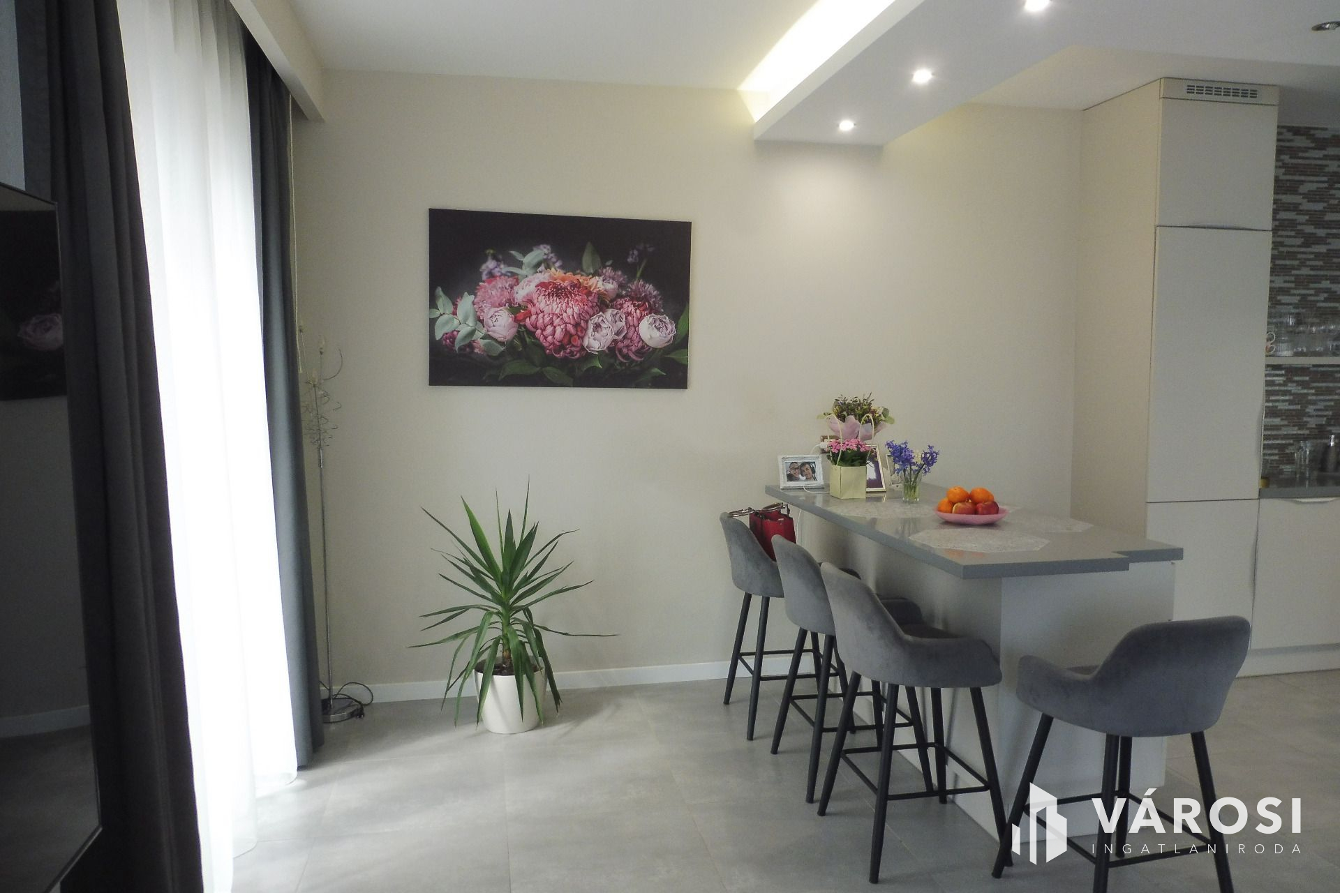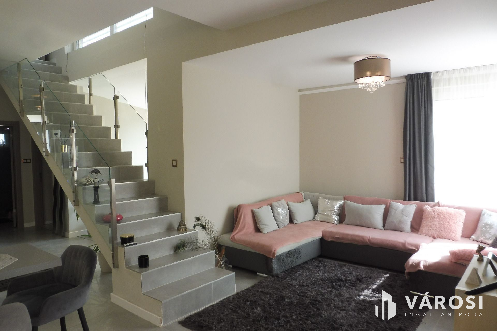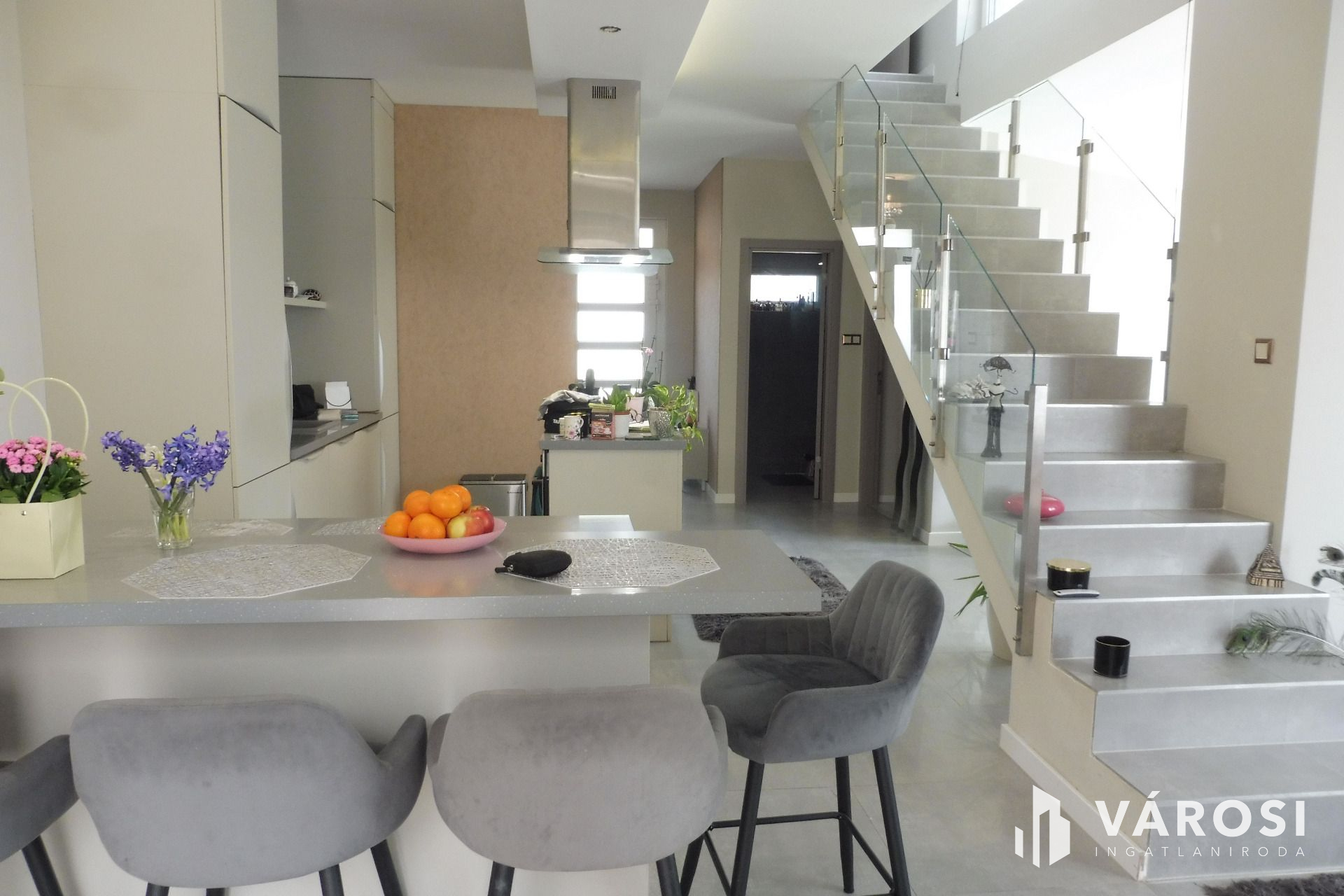 Az ingatlan valódi zöldövezetben található egy perc sétára a töltéstől és a Tisza-parttól.Modern és egyedi vonalvezetés jellemzi a ház külső karakterét,szerethető,pozitív hangulatú a benapozása.A földszinten található a négy szobából az egyik,mely szülői hálóként tud funkcionálni és extra előnye,hogy közvetlen mellette helyezkedik el a fürdőszoba.A nappali,étkező konyha szépen átlátható tágas és világos.Az emeleten három szoba,fürdő és megannyi erkély található.A ház 160 négyzetméter a telek pedig 360 négyzetméter.A kert parkosított rendezett és fűthető medencével rendelkezik.A ház gépészete,hőszivattyús rendszerrel szerelt,költséghatékonysága rendkívül kedvező.
