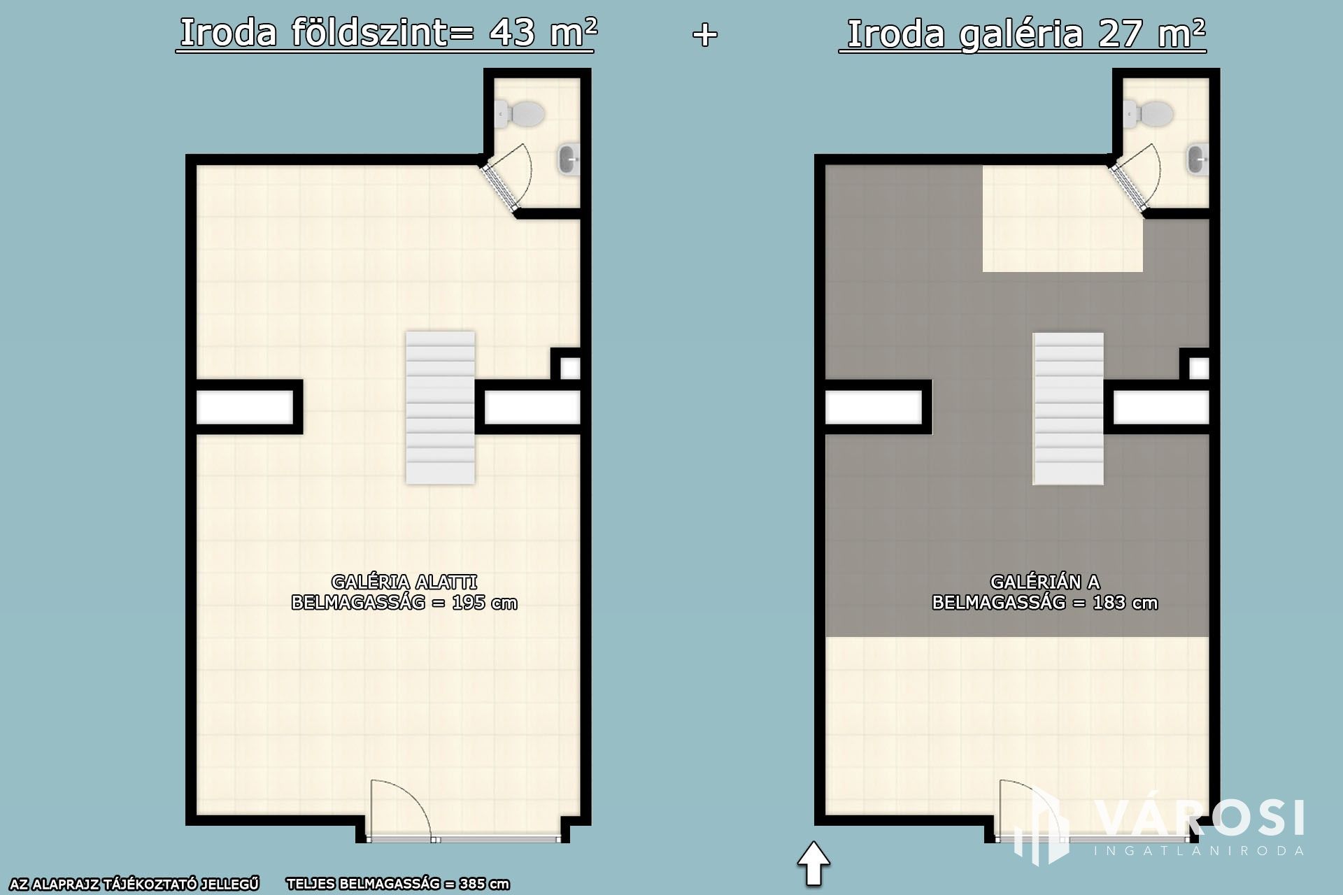 Az alapterületet (43 m2), amit egy fém szerkezetű, masszív álló galériával növelték meg, ahol további 27 m2 hely jut irodának, vagy éppen raktározásra. A galéria utca felöli részén üvegfal biztosítja a földszintre rálátást és a természetes fényt.