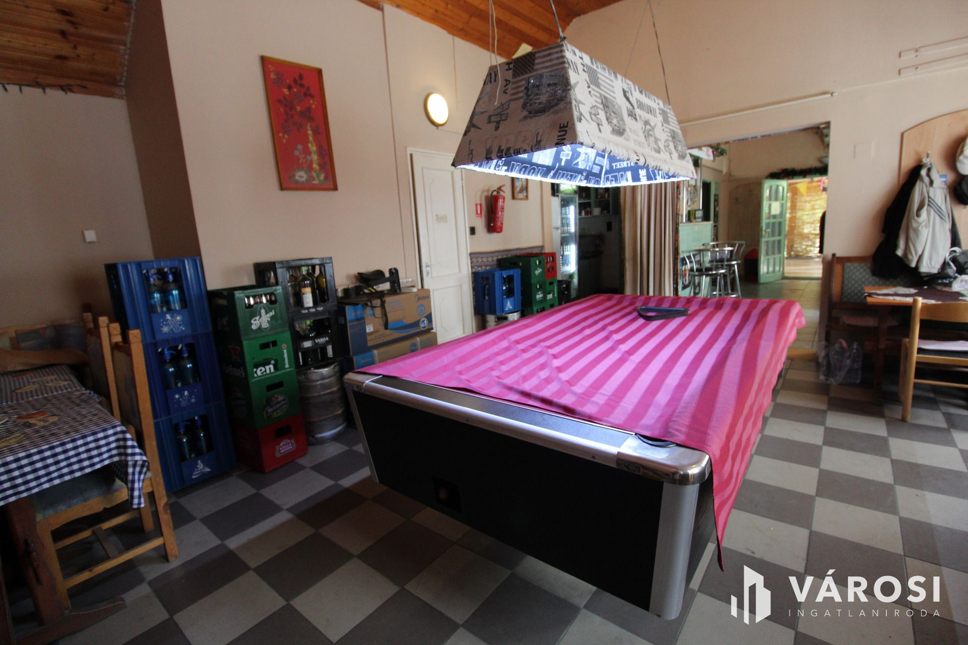 Az ingatlan teljes berendezéssel eladó ( biliárdasztal, vendégtér berendezései, kiszolgáló helység berendezései és gépei ).