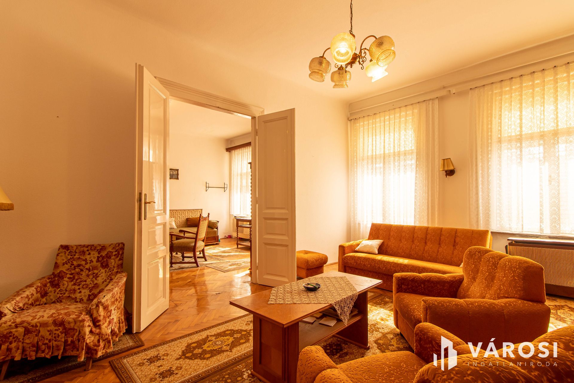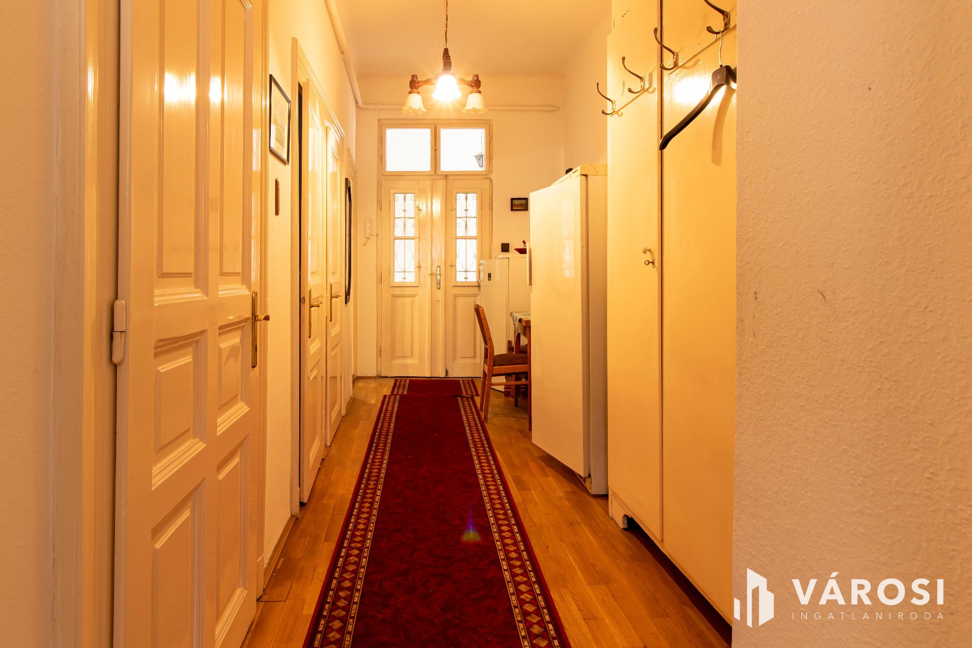 A 73 m²-es lakás egy rendezett, tiszta és folyamatosan karbantartott társasház 3. emeletén helyezkedik el, amely lifttel is rendelkezik, így a megközelítés kényelmes és praktikus. Már belépve is érezhető a klasszikus polgári hangulat: a tágas előtér, a nagy belmagasság és a két egymásból nyíló, dupla szárnyú ajtóval összekötött szoba eleganciát sugároz. A szobák az utcára néznek, ennek köszönhetően rendkívül világosak, az egyikből pedig egy kellemes erkély nyílik, ahol akár reggeli kávé mellett figyelheti a környék lassan pezsgő, mégis nyugodt mindennapjait.