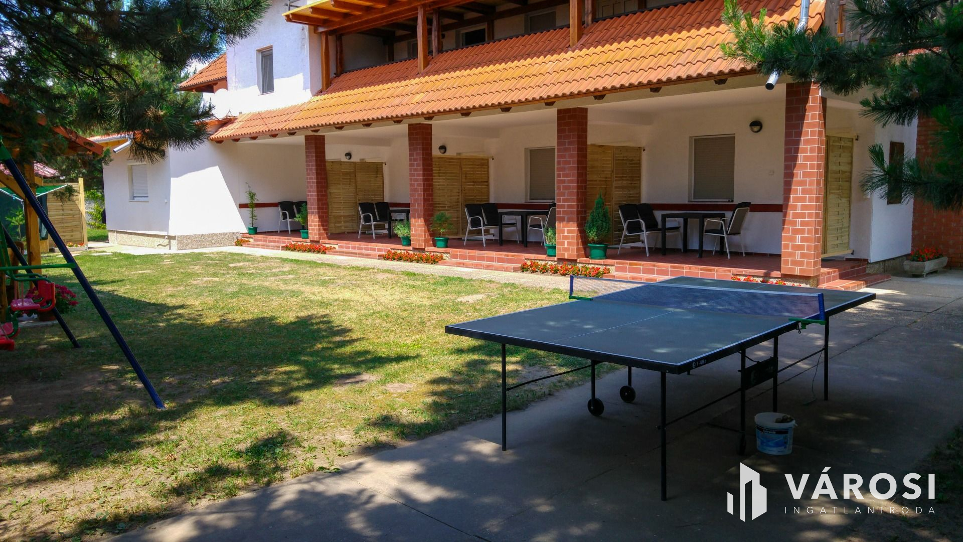 A telek 980 m2-es. Az udvarban kialakításra került egy mosókonyha, amely 2 mosógéppel, 2 szárítógéppel és 1 mosogatógéppel van felszerelve, hogy az apartmanházhoz kapcsolódó összes mosási, szárítási és mosogatási feladatokat helyben el lehessen végezni. A kertben ping-pong asztal, hinták, valamint egy 50 m2-es épített szaletli található.