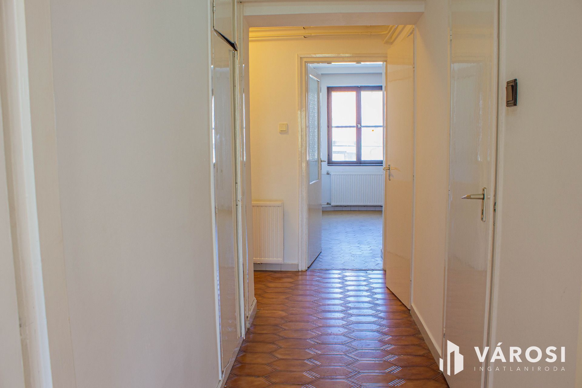 Az egyik szoba és a konyha az utcára néz, a másik szoba az udvarra. Egyedi radiátoros fűtéssel rendelkezik.