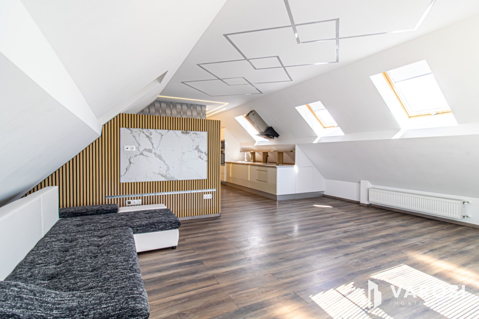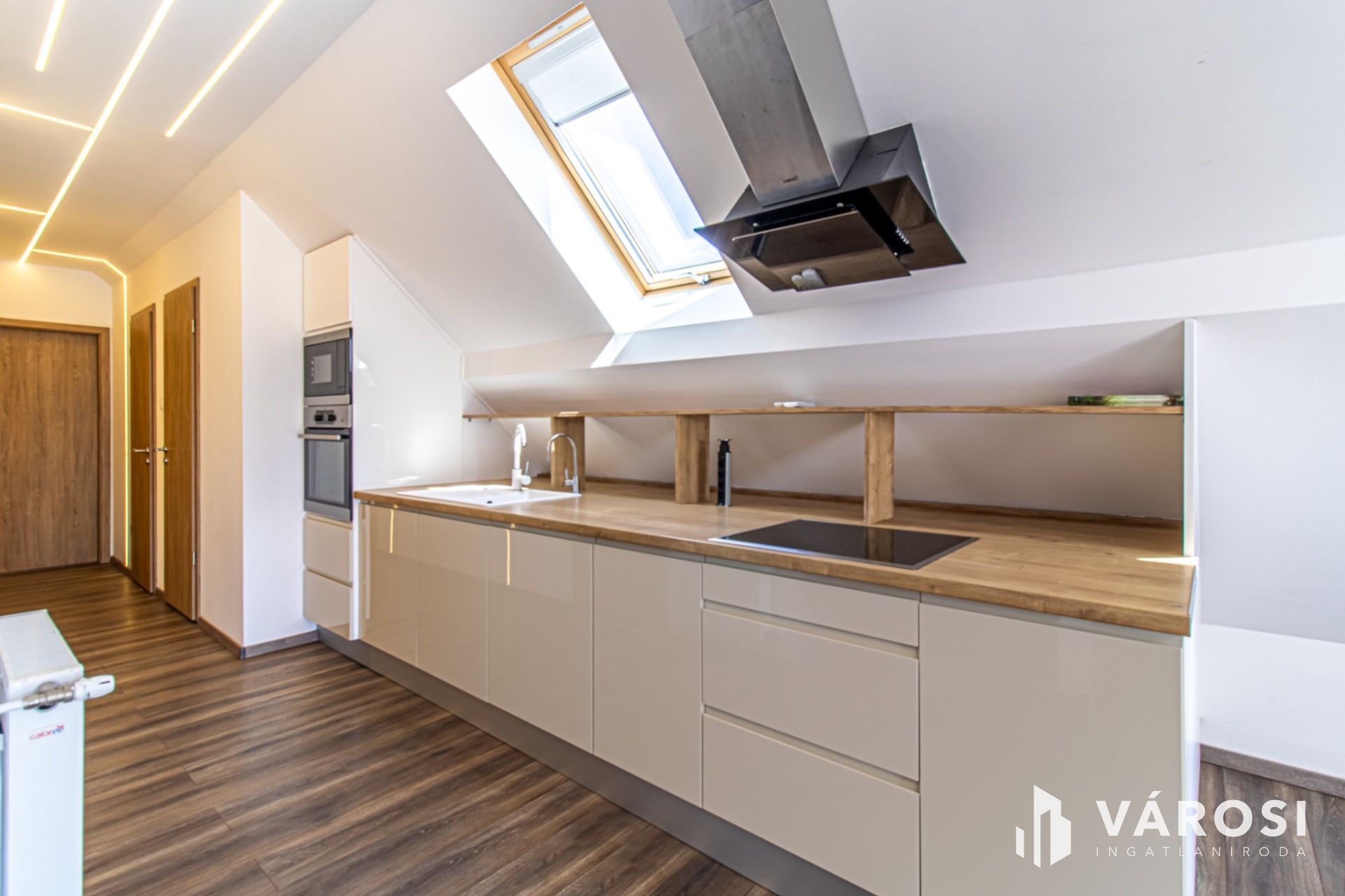 A lakás ára a gépesített konyhát is tartalmazza (mikró, sütő, elektromos főzőlap, páraelszívó).