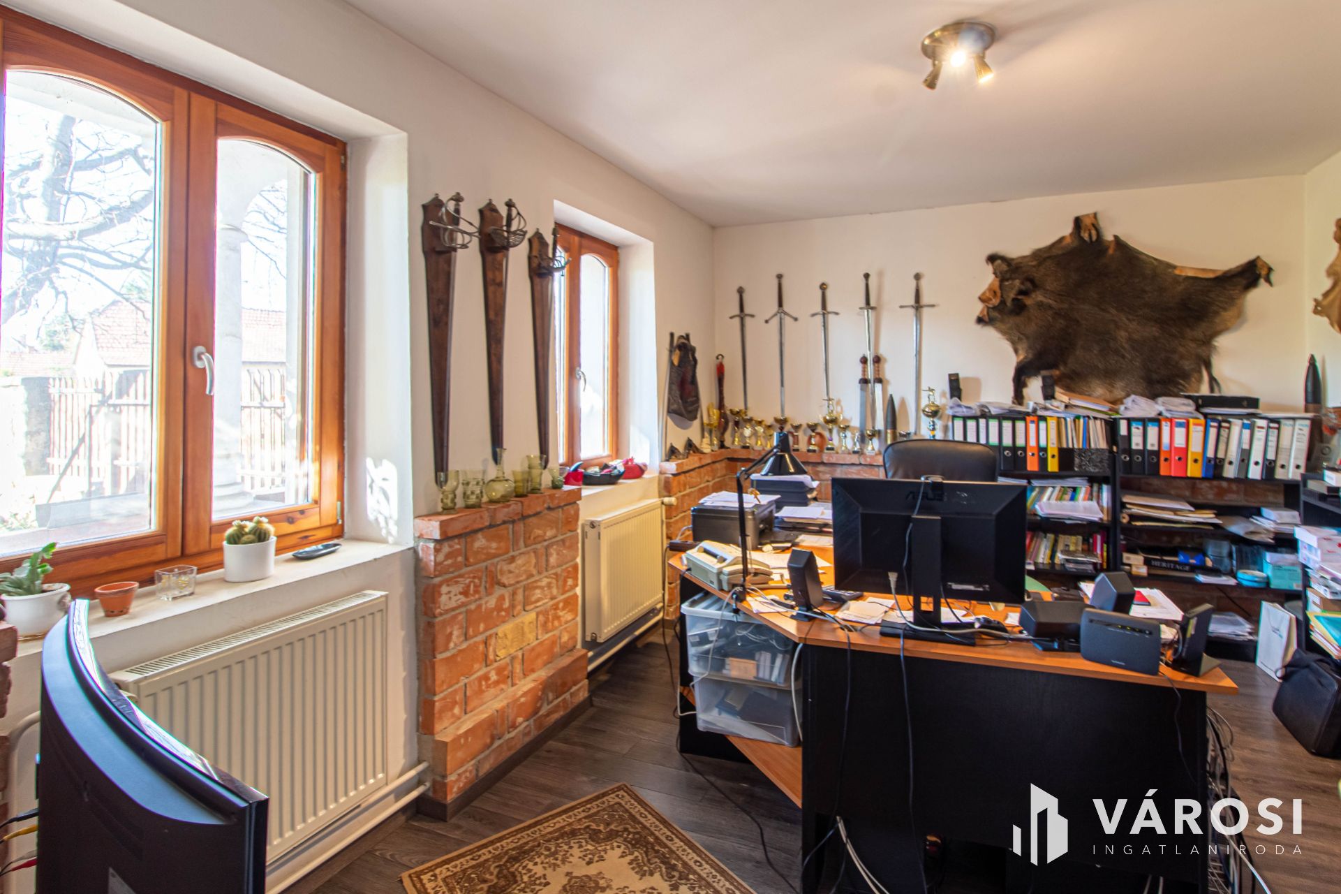 Az udvaron minden adott a vidéki élet teljességéhez: ásott kút, 16 m²-es lakható melléképület, boros pince,fedett gépkocsi-beálló, valamint nagy méretű kerti tároló biztosítja a praktikus és kényelmes életet. A ház technikailag is jól felszerelt: elektromos kapu és garázsajtó, klíma, kétkörös riasztórendszer, kandalló, víztisztító, valamint a régi rész szigetelt födéme is a gondos kialakítás bizonyítéka.