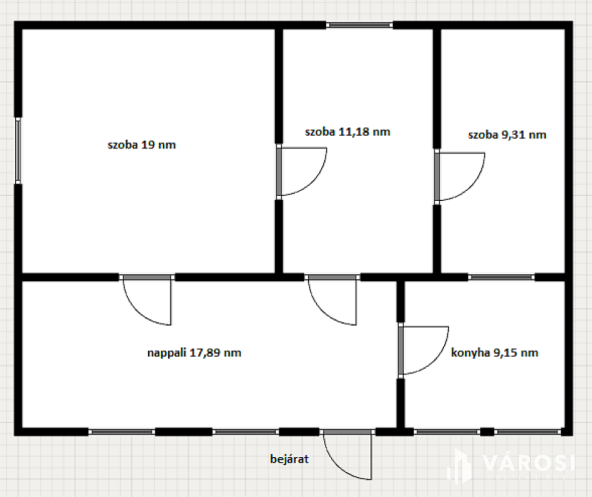 A hasznos alapterülete 67 négyzetméter, 3 szoba, nappali és konyha található benne.