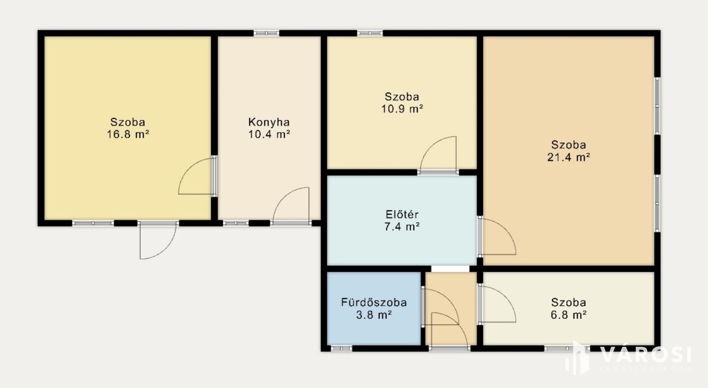 Az ingatlan fő részében 2 nagyobb és egy kisebb szoba található illetve itt van a fürdőszoba is.